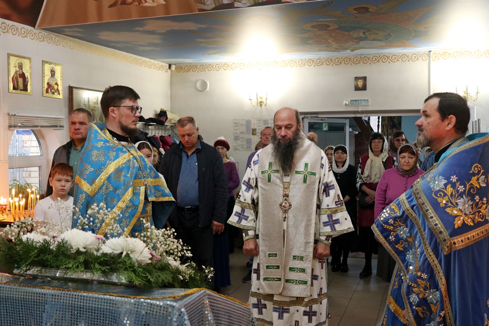 НОВООРСК. 4 ноября 2025 г. Во вторник седмицы 22-й по Пятидесятнице, Празднование Казанской иконе Божией Матери (в память избавления Москвы и России от поляков в 1612 г.), епископ Орский и Гайский Ириней возглавил Божественную литургию, а накануне вечером всенощное бдение в Казанском храме.