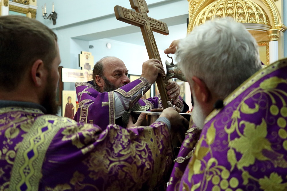 НОВОТРОИЦК. 27 сентября 2025г. В субботу седмицы 16-й по Пятидесятнице, праздник Воздвижения Честного и Животворящего Креста Господня, епископ Орский и Гайский Ириней возглавил Божественную литургию в храме Благовещения Пресвятой Богородицы.