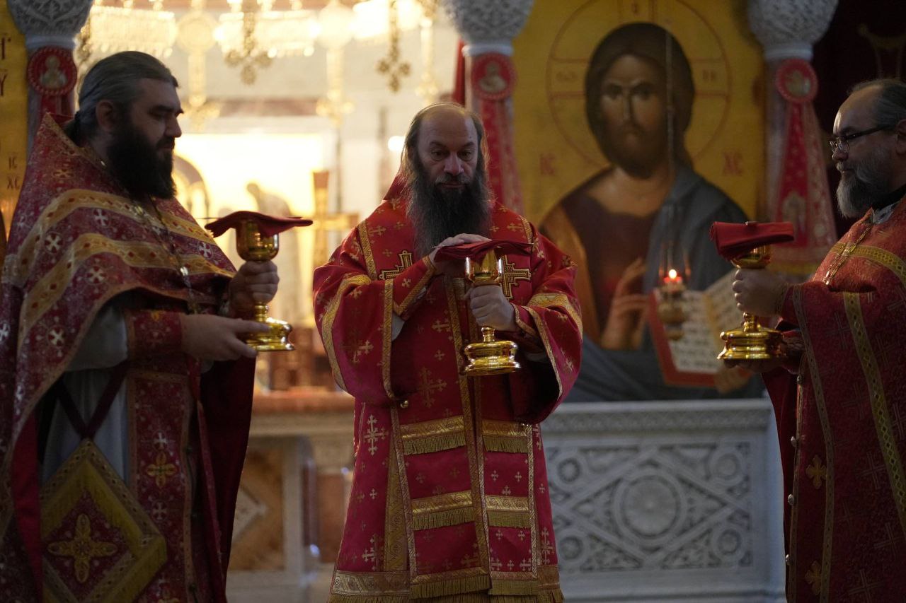 ЕКАТЕРИНБУРГ. 11 сентября 2025 г. В праздник Усекновения главы Крестителя Господня и Предтечи Иоанна Преосвященнейший Ириней, епископ Орский и Гайский, по благословению митрополита Екатеринбургского и Верхотурского Евгения, возглавил Божественную литургию в Александро-Невском соборе Ново-Тихвинского женского монастыря.