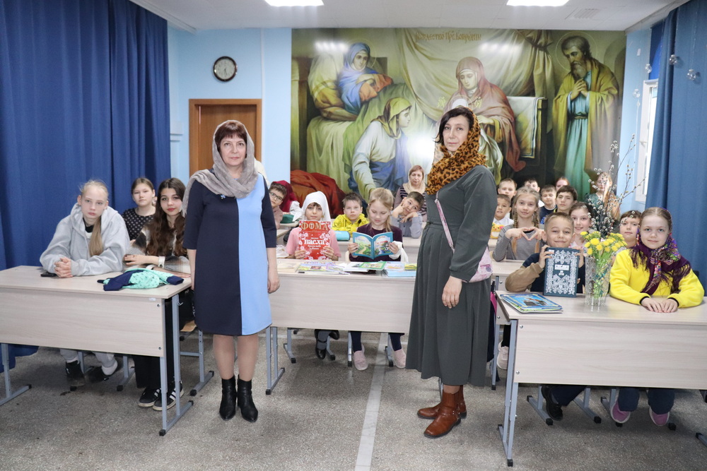 НОВОТРОИЦК. 13 апреля 2025 г. В Неделю 6-ю Великого Поста, праздник Входа Господня в Иерусалим, по окончании Божественной литургии в Воскресной школе при Петропавловском храме прошёл открытый урок, посвященный «Дню Православной книги».