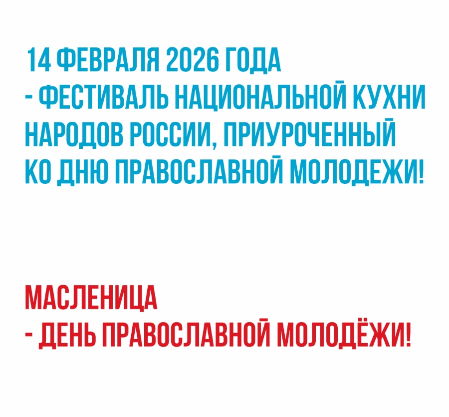 ОРСК. 14 февраля 2026 г. В Орском гуманитарно-технологическом институте состоится Фестиваль национальной кухни народов России, приуроченный ко Всемирному дню православной молодежи.