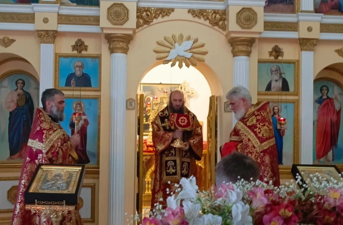 Его Преосвященству сослужили настоятель храма протоиерей Вячеслав Кочкин и клирик храма священник Иоанн Келбуцэ.