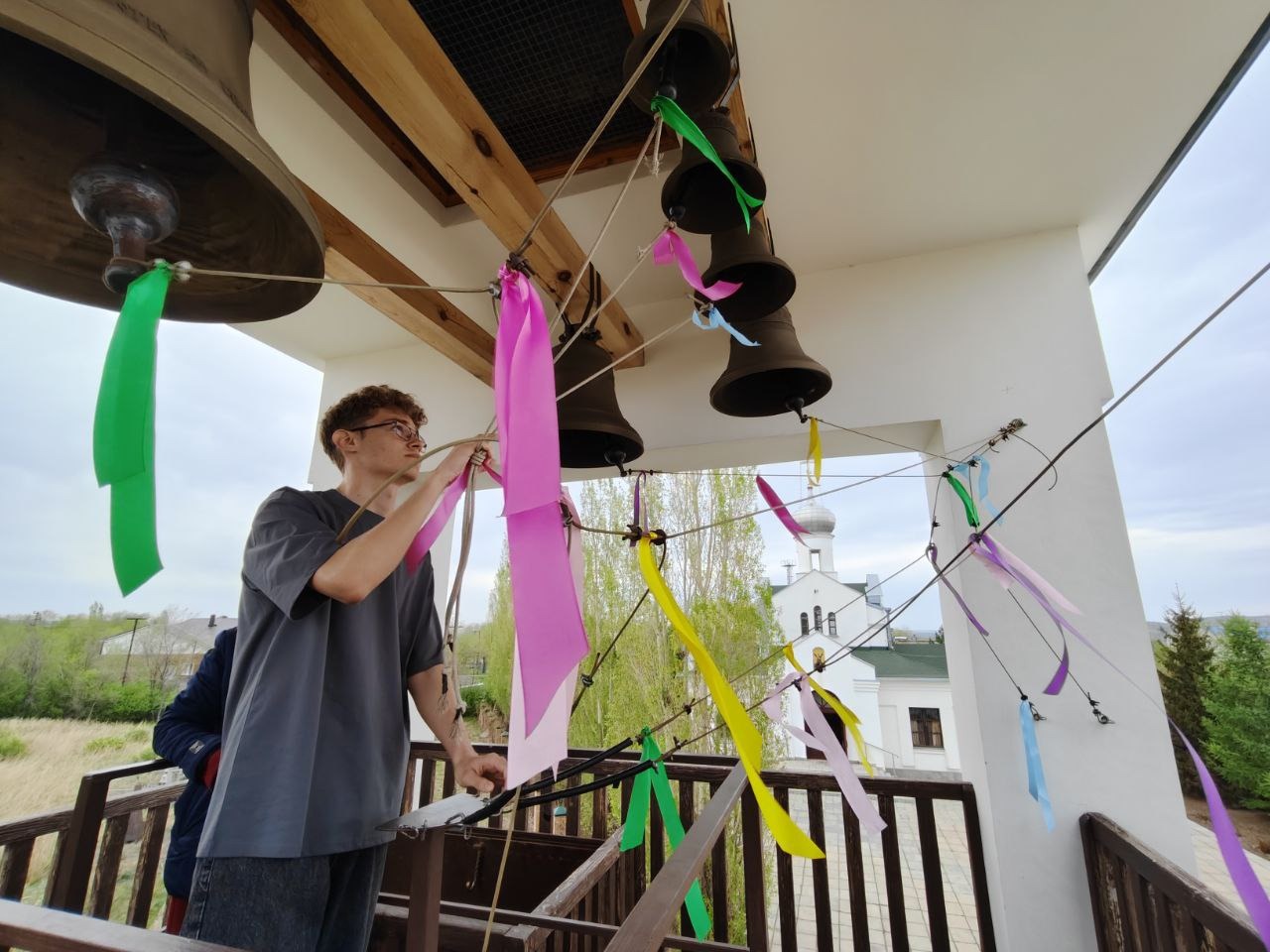 Теплая весенняя погода позволила прогуляться по территории храма и позвонить в колокола. Звонарь Татьяна провела мастер класс для ребят и объяснила школьникам, что неделя после Пасхи — особенная, каждый человек может выразить пасхальную радость в эти дни и звонить в колокола. Для детей и взрослых — это радость для души, радость о Воскресшем Христе. Христос Воскрес, а значит смерти нет. А значит, и мы воскреснем. Это основа нашей веры. Христос Воскресе! С праздником Светлой Пасхи!
