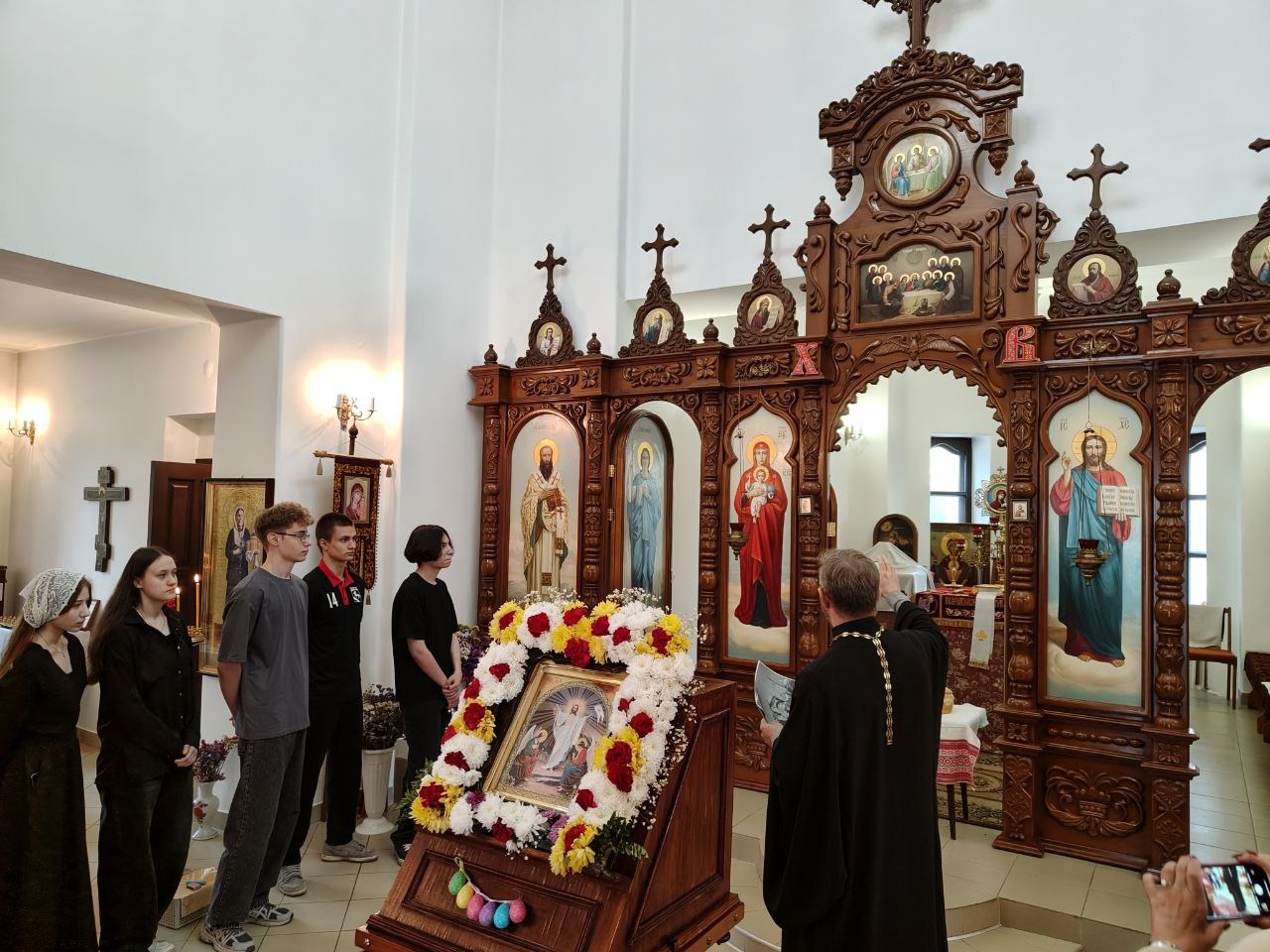 Отец Евгений познакомил гостей с внутренним убранством храма, рассказал о святынях и иконах. Настоятель в доступной форме рассказал ребятам об истории христианского праздника Пасхи. Ребята узнали о заповедях, о вреде сквернословия, о том, как важно почитать родителей. Дети смогли поставить свечи с молитвой о своих близких.