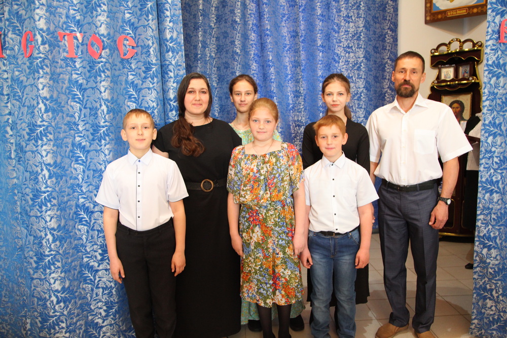 Концертные номера семьи выбирали и подготавливали сами: семья Дергуновых читали стихи, посвященные Воскресению Христову, большая и дружная семья Шаповаловых, а это полноценный хор (в полном составе семь человек), проникновенно исполнили песню Сергея Трофимова «Родина», которая в их исполнении зазвучала по-особому трогательно и проникновенно. Семья Шиловых и О.Б. Подтихова читали стихи, семья Мягких и Иляевых исполнили песню «Христос Воскрес» Аллы Чепиковой и читали стихи. Л.Н. Колбасина прочитала рассказ «Пасха в темноте» – это пересказ очевидца Андрея Стрешнева о том, как проходила Пасха в 1942 году.