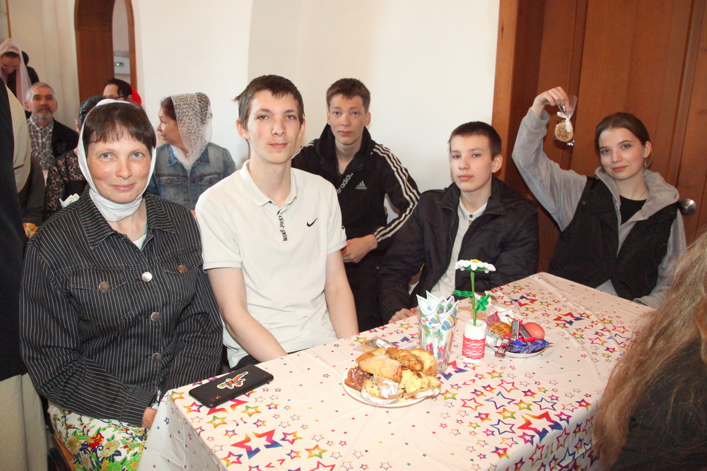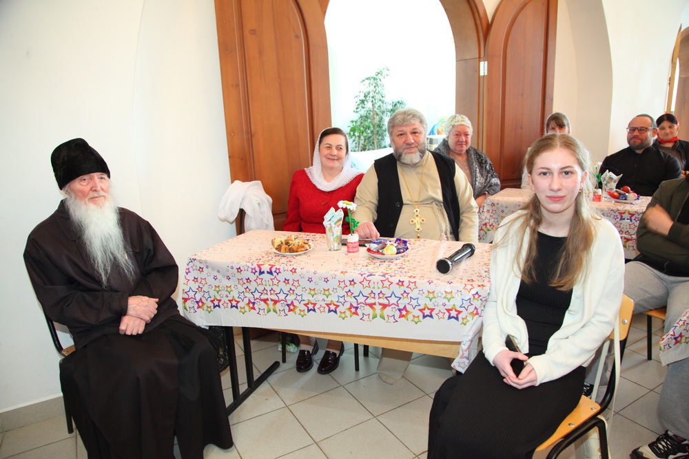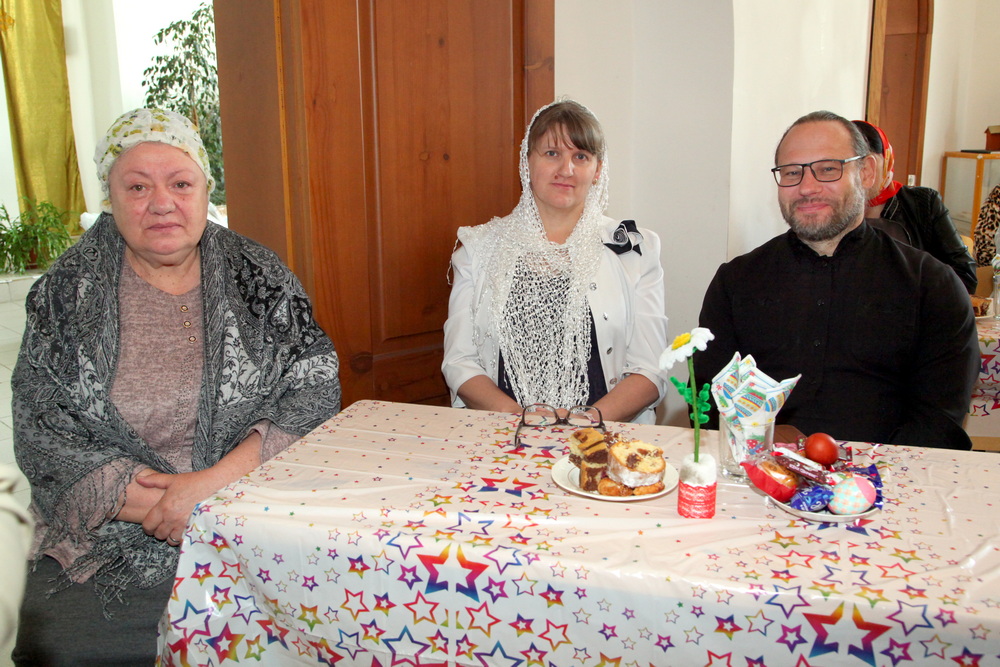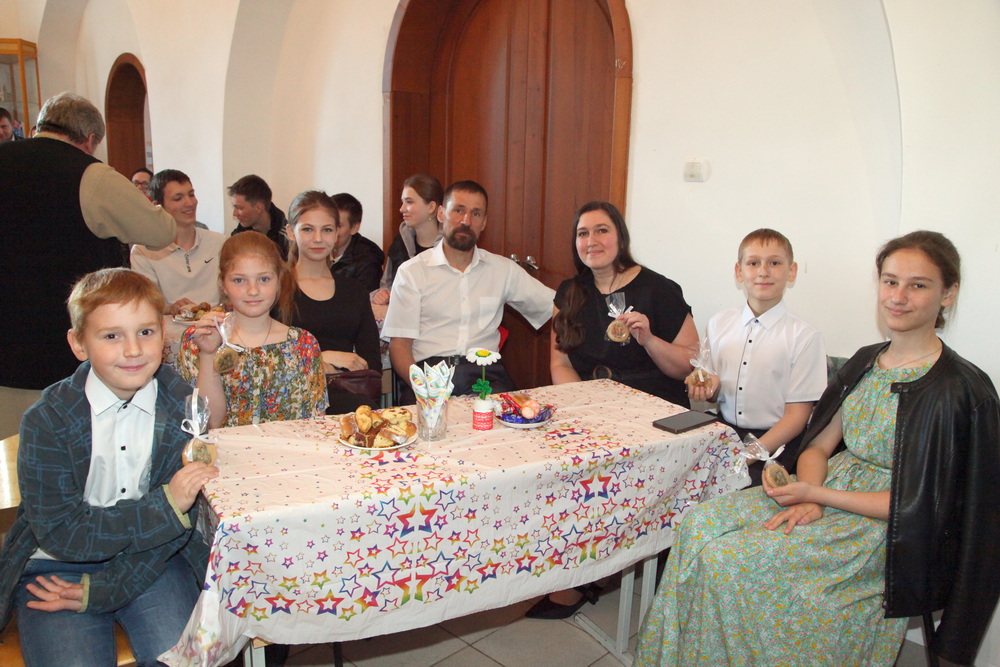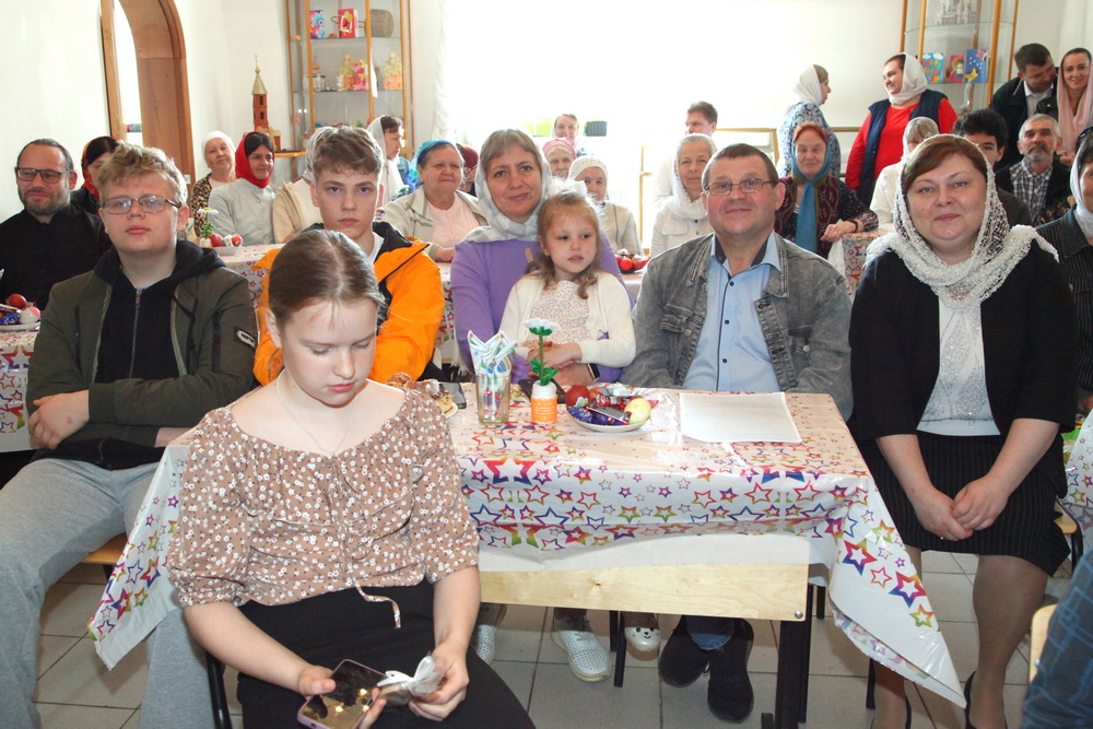 На семейном Пасхальном празднике присутствовали почетные гости: настоятель храма протоиерей Анатолий Сопига, матушка Неонилла, священник Олег Соболевский и матушка Елена, диакон Иоанн Алексеев и прихожане храма.