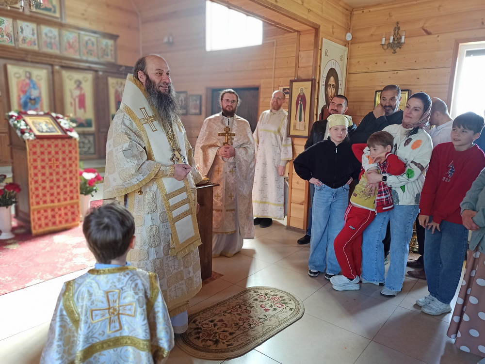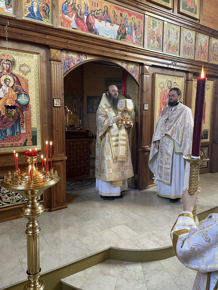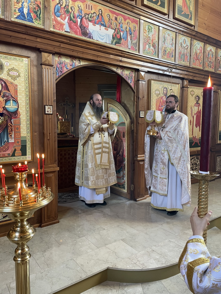 За Божественной литургией Его Преосвященству сослужил настоятель храма священник Василий Агеев.