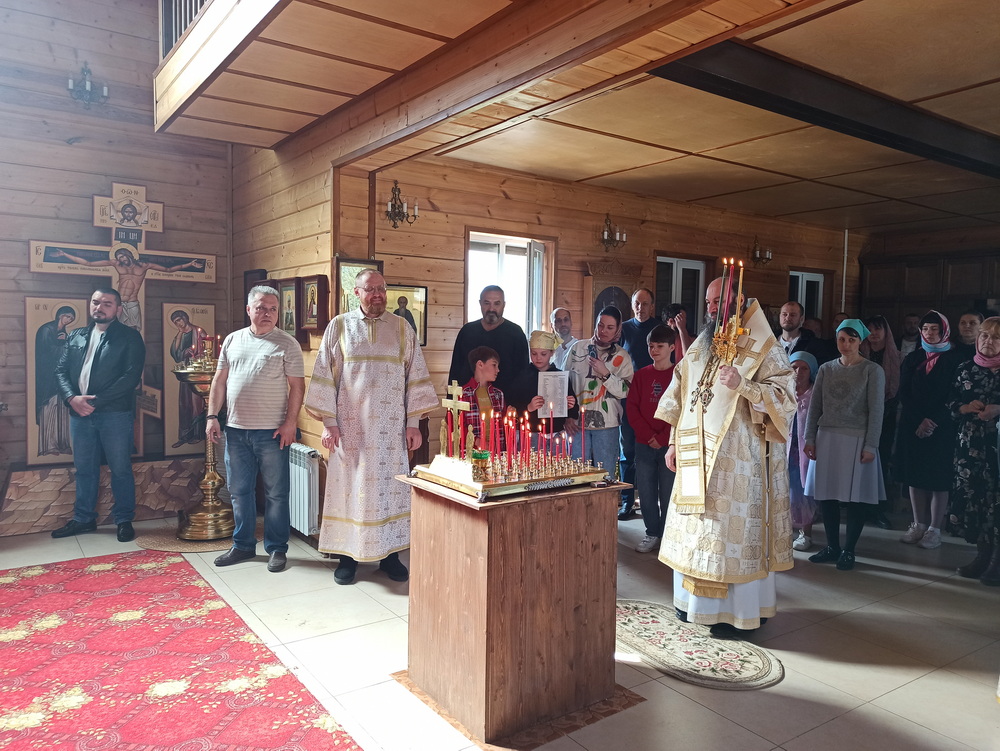 Накануне, вечером 3 мая Преосвященнейший Ириней молился за всенощным бдением в этом же храме.