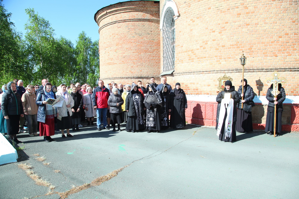 Затем были совершены Панихида и Крестный ход вокруг храма. Вознесли молитвы у Поклонного креста и монашеских могил, находящихся на территории храма. В заключение пропели «многая лета» матушке Ксении с сестрами и о. Анатолий поблагодарил их за участие в богослужении.
