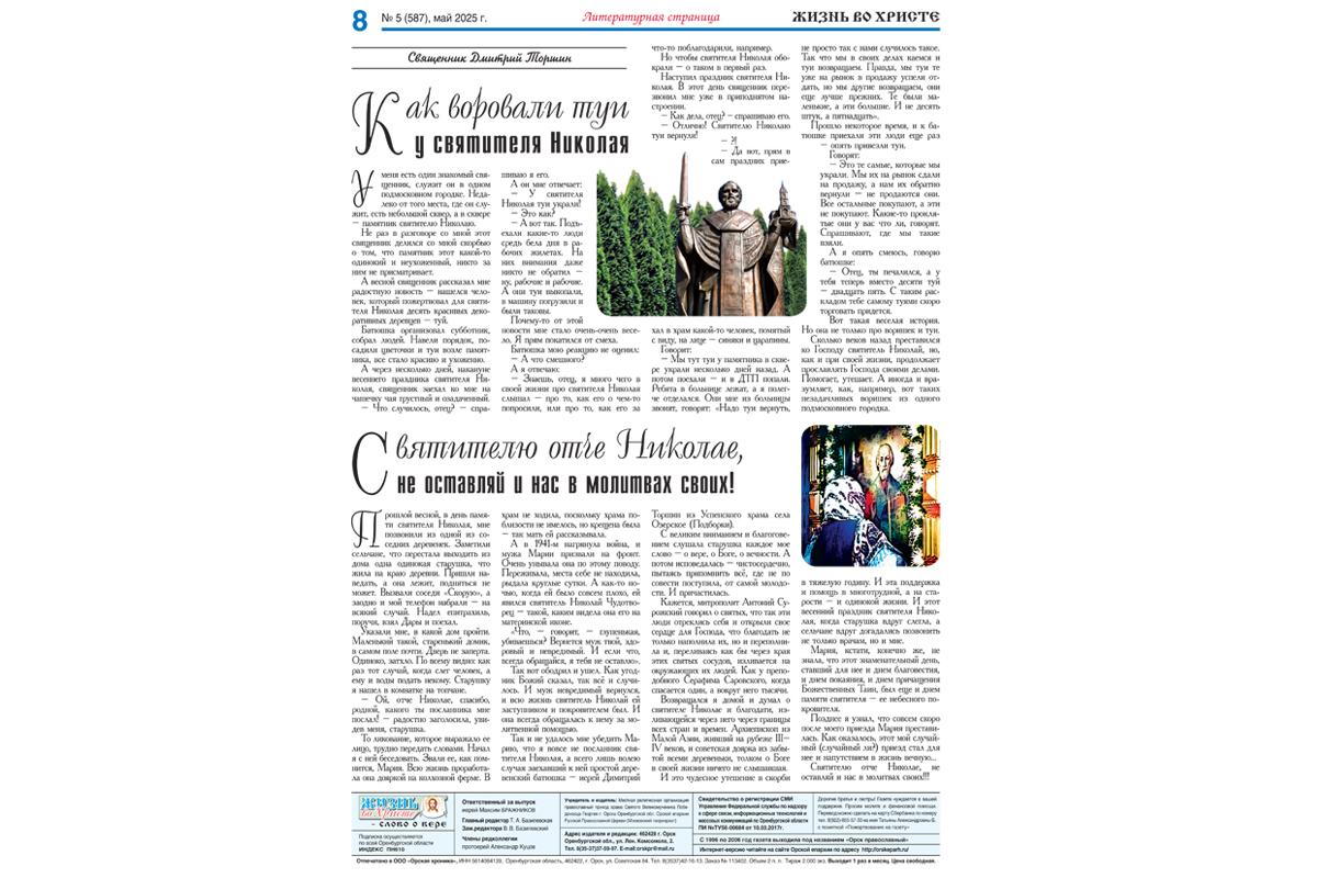На «Литературной странице» читайте рассказы священника Дмитрия Торшина «Как воровали туи у святителя Николая» и «Святителю отче Николае, не оставляй и нас в молитвах своих!»