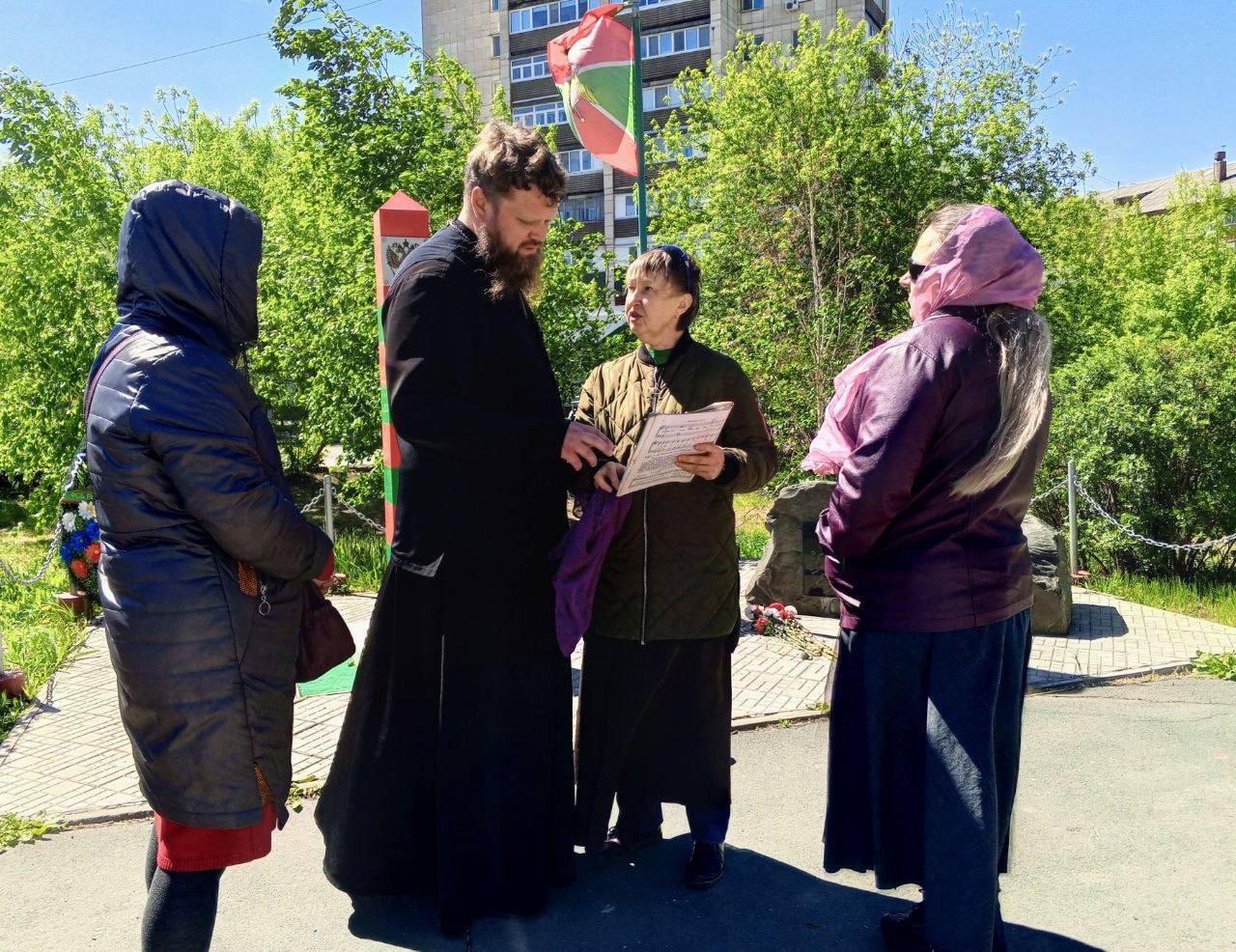 ОРСК. 4 мая 2025 г. После воскресной Божественной литургии, клирик Свято-Георгиевского кафедрального собора священник Николай Дьяконов совершил заупокойную литию возле памятника пограничникам Отечества на проспекте Мира.
