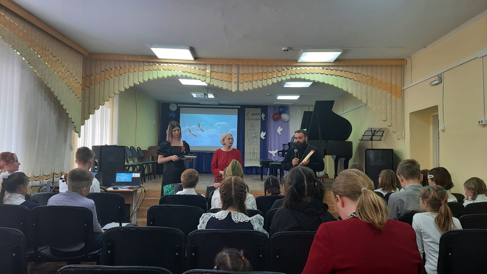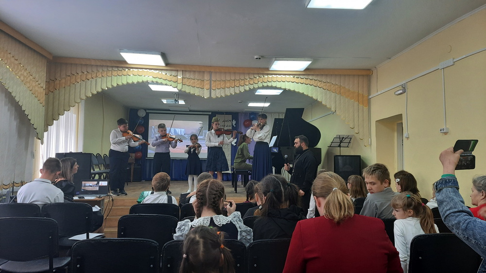 Ученики детской школы искусств представили доклады о своих предках – героях Великой Отечественной войны. Рассказы о жизни и подвигах дедов и прадедов чередовались с музыкальными номерами, в которых прозвучали такие произведения военных и послевоенных лет, как Вальс Победы, марш «Прощание славянки», «Катюша» и многие другие. Так же перед участниками выступил ансамбль скрипачей под руководством Елены Патоски с песней «Журавли» вокальную партию в которой исполнил священник Димитрий Патоска.