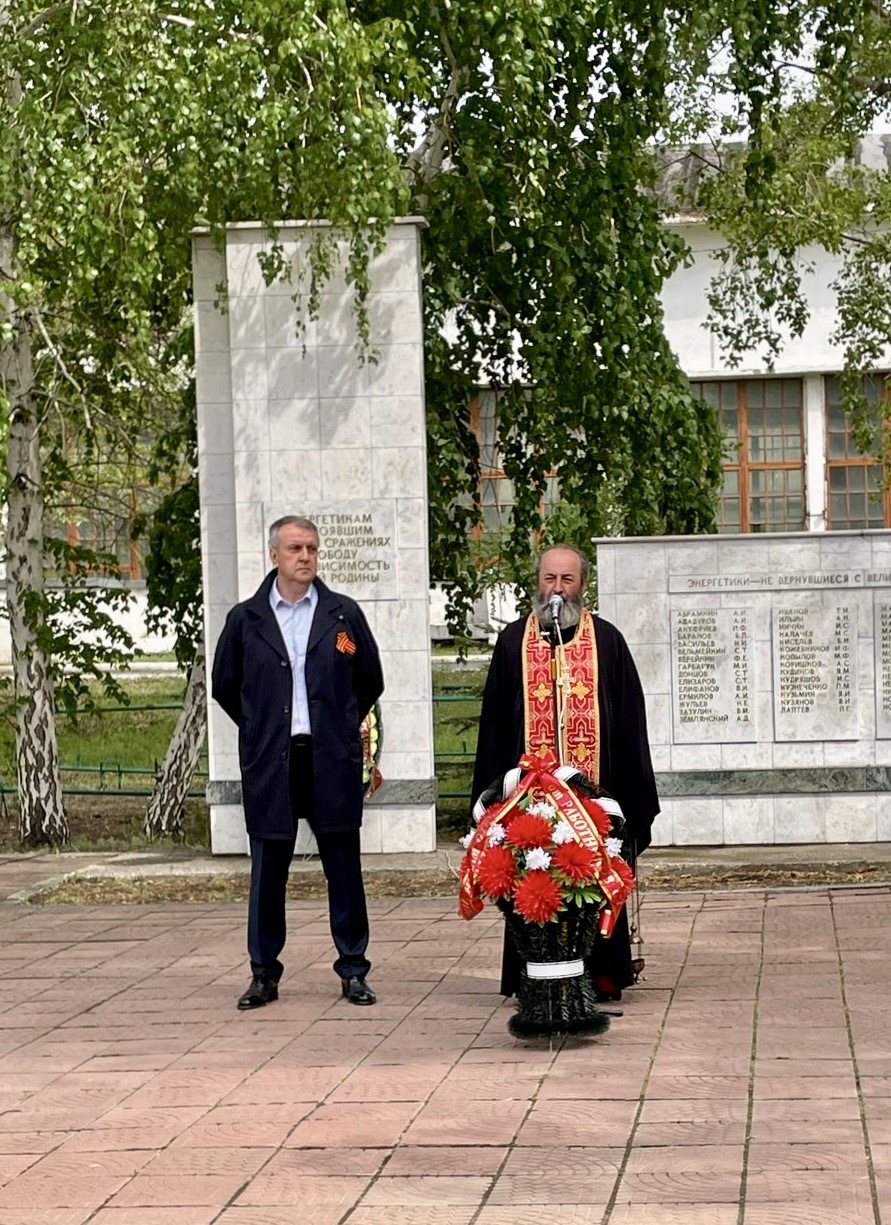 ОРСК. 8 мая 2025 год. На территории ТЭЦ-1 состоялся памятный митинг, посвященный 80-летию Победы в Великой Отечественной Войне, в котором принял участие благочинный Орского округа протоиерей Александр Куцов.