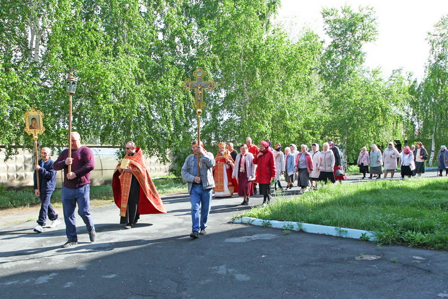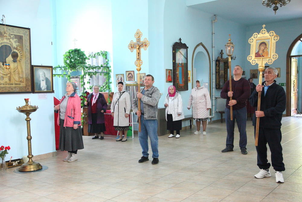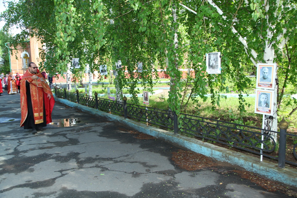 После отпуста Литургии состоялся крестный ход. На аллее Памяти настоятель храма протоиерей Анатолий Сопига и священник Олег Соболевский совершили панихиду по воинам, живот свой на поле брани положившим, Победы ради потрудившихся и всем почившим православным христианам. Молитвенно почтили память всех, кто защищал Отечество на фронте и в тылу. По окончании крестного хода отец Анатолий поздравил молящихся с праздником и обратился с проповедью.