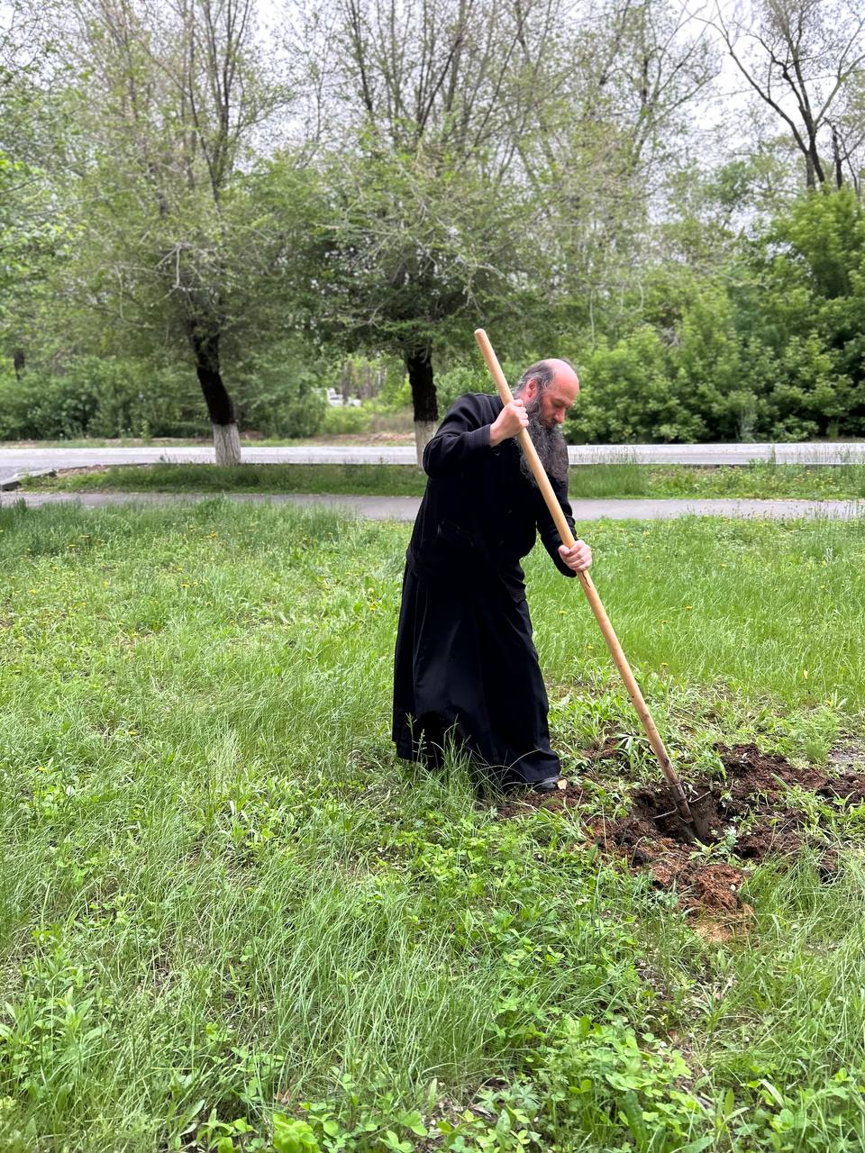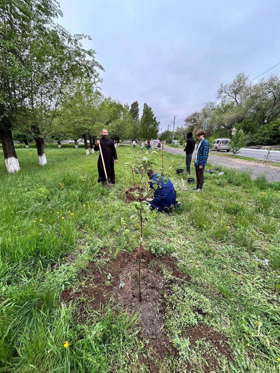 ОРСК. 14 мая 2025 г. В день Преполовения Пятидесятницы епископ Орский и Гайский Ириней вместе со священнослужителями города Орска и студентами Орского гуманитарно-технологического института (ОГТИ) принял участие в закладке «Сада Победы».