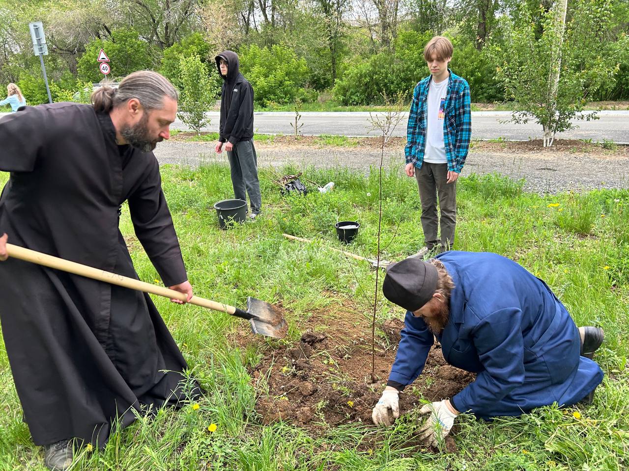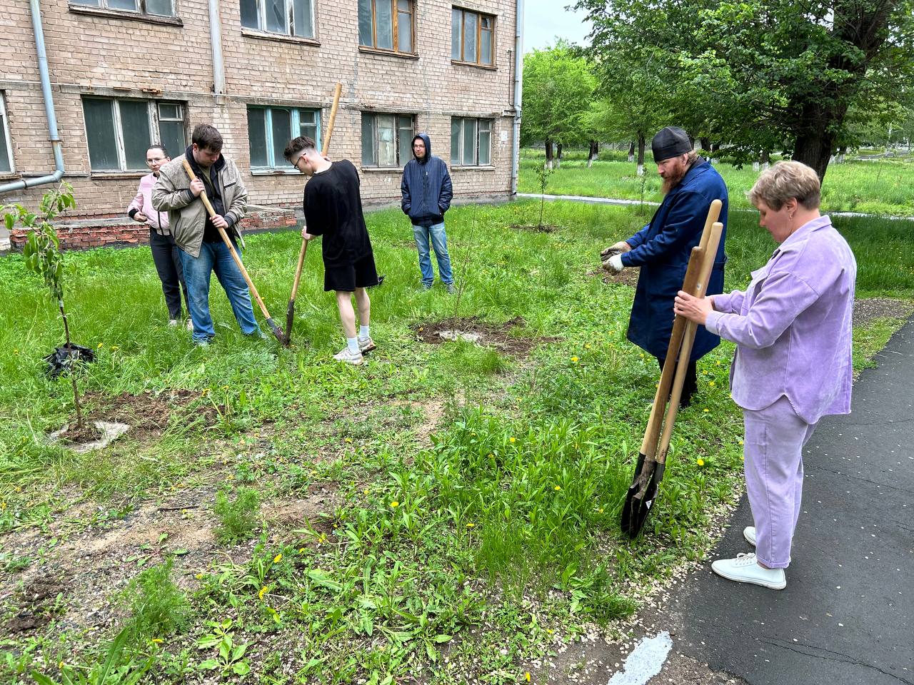 На территории института было высажено более 40 саженцев плодовых деревьев - яблонь, абрикосов, вишен, рябин, берез. Все они были привезены настоятелями орских храмов и студентами института.