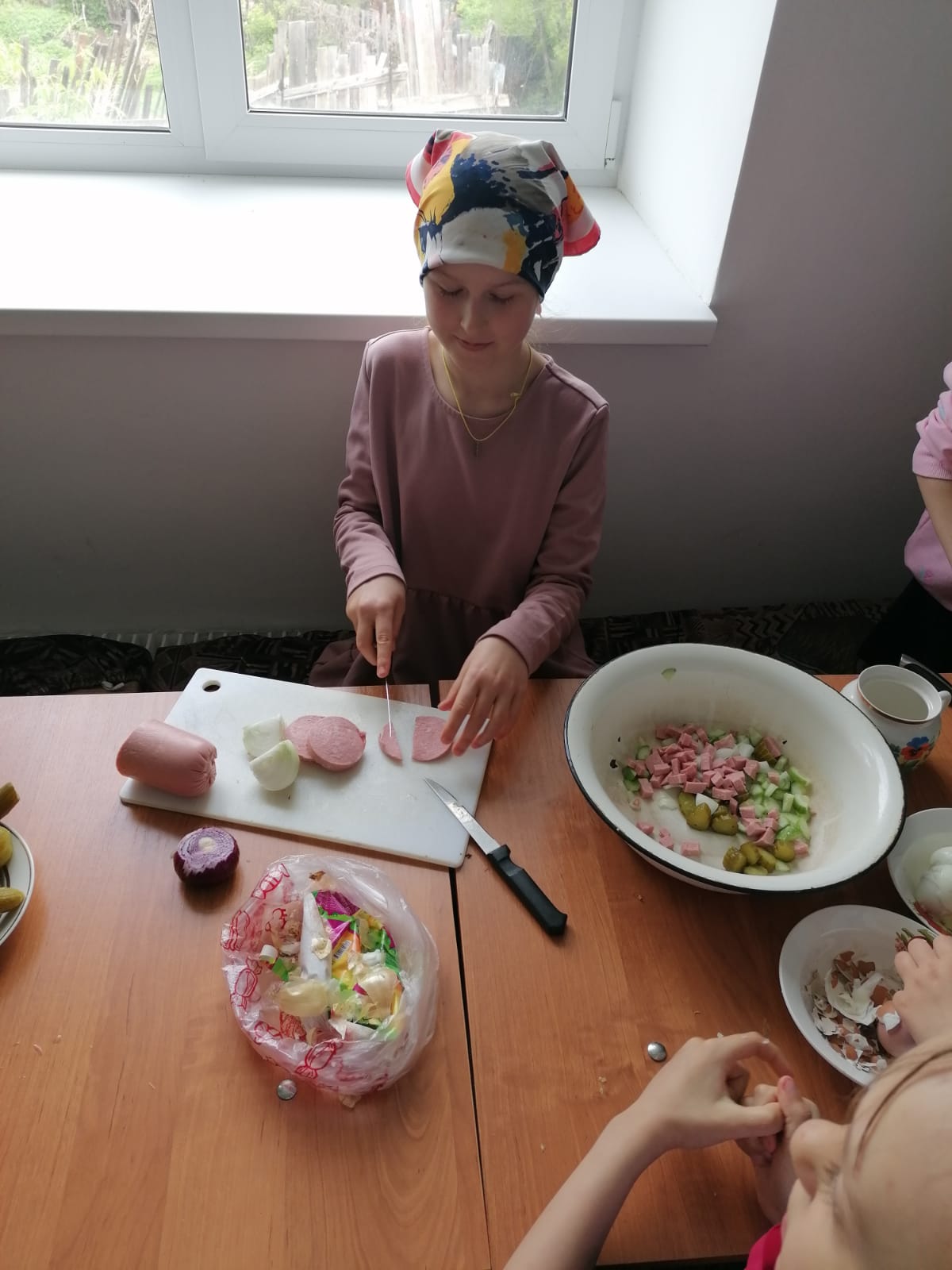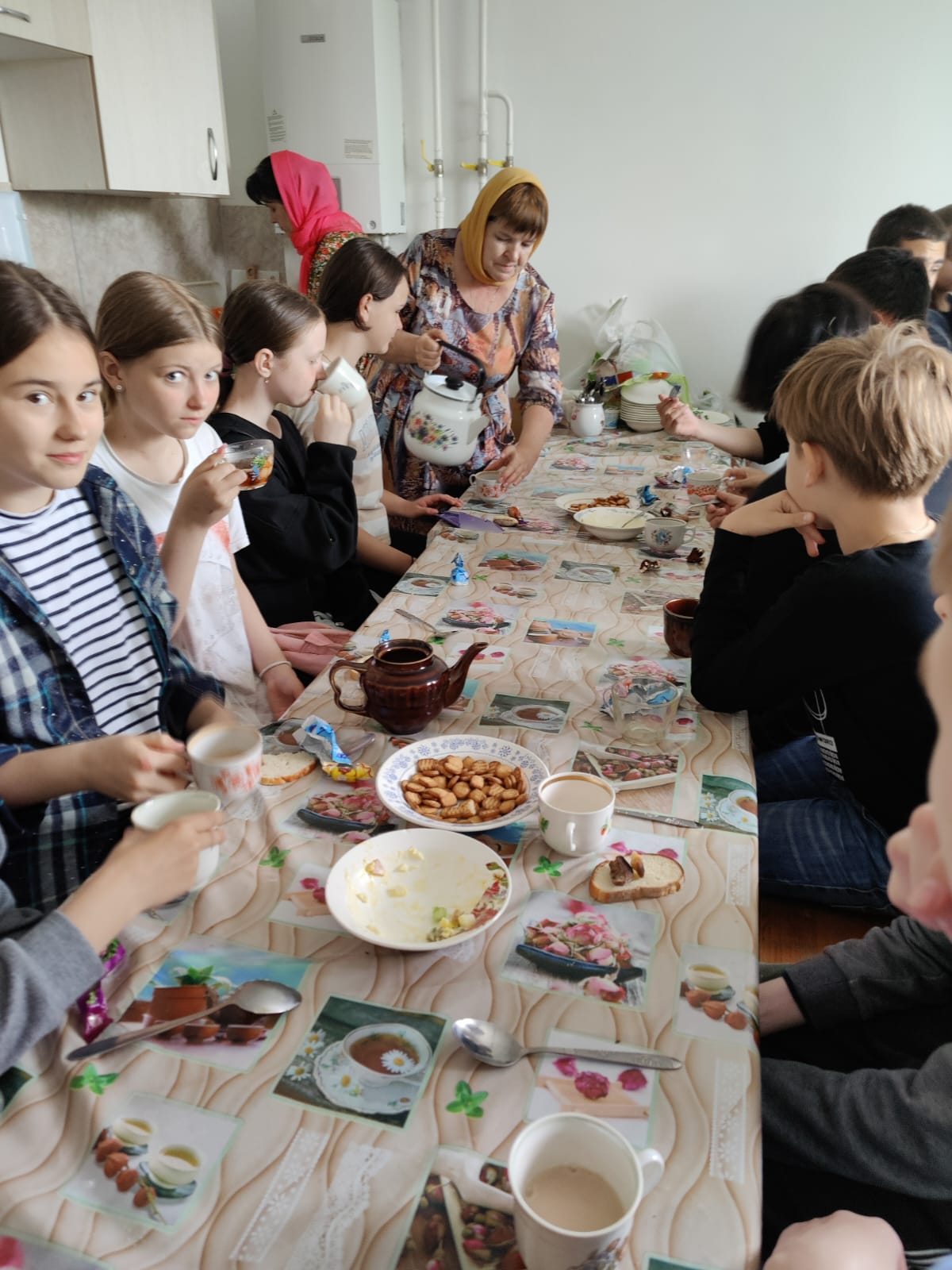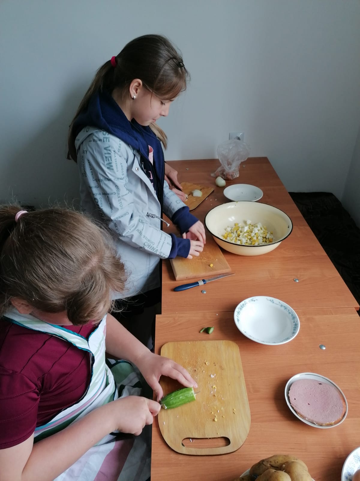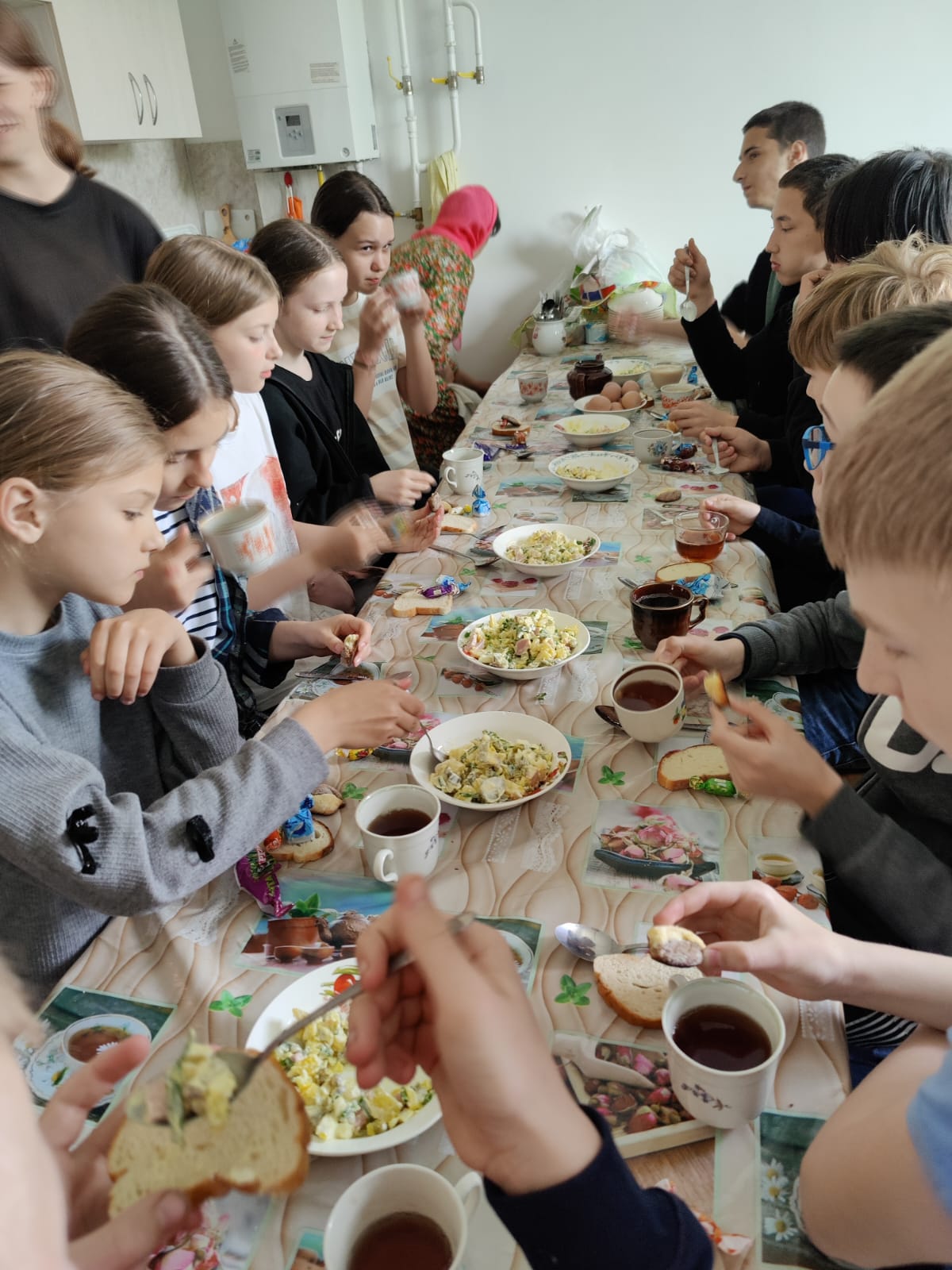 Девочек поддерживали мальчики, которые приносили командам дополнительные баллы, ответив на вопросы или исполнив номер самодеятельности. Эти же ребята выполняли роль строгих судей: дегустировали приготовленные девочками блюда, оценивали ответы на вопросы. Получив сладкие призы за 1 и 2 места, все дружно отправились поедать приготовленные конкурсантами салаты и пить чай с только что вынутым из духовки печеньем «Листочек».