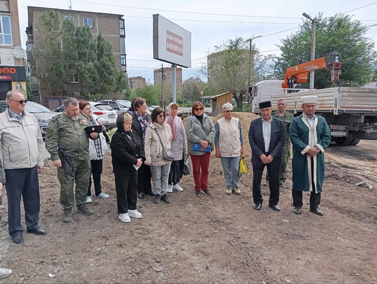 ОРСК. 17 мая 2025 г. На пересечении улицы Нефтяников и проспекта Ленина, епископ Орский и Гайский Ириней, в сопровождении протоиерея Анатолия Сопиги, освятил место под будущий памятник воинам-защитникам Отечества, павшим в ходе специальной военной операции на территории Украины.