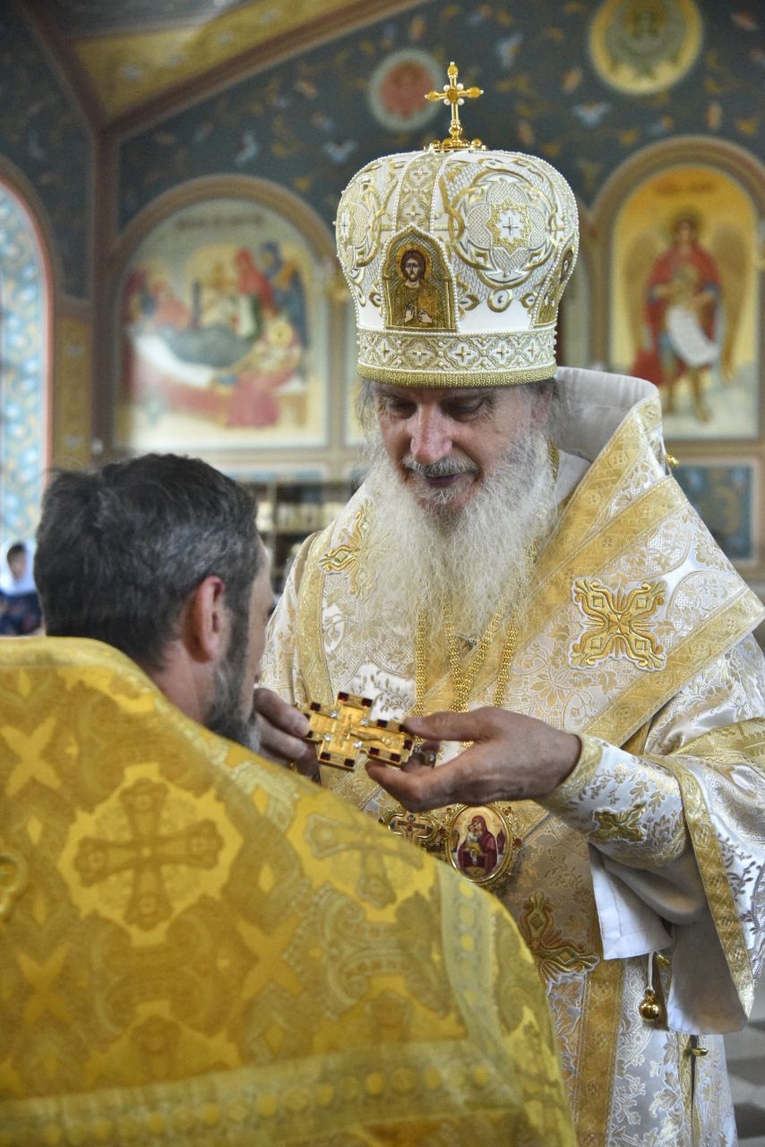 На малом входе митрополит Петр удостоил богослужебно-иерархической награды священника Оренбургской епархии Александра Карпец. Согласно указу ему благословляется ношение наперсного креста с украшениями.