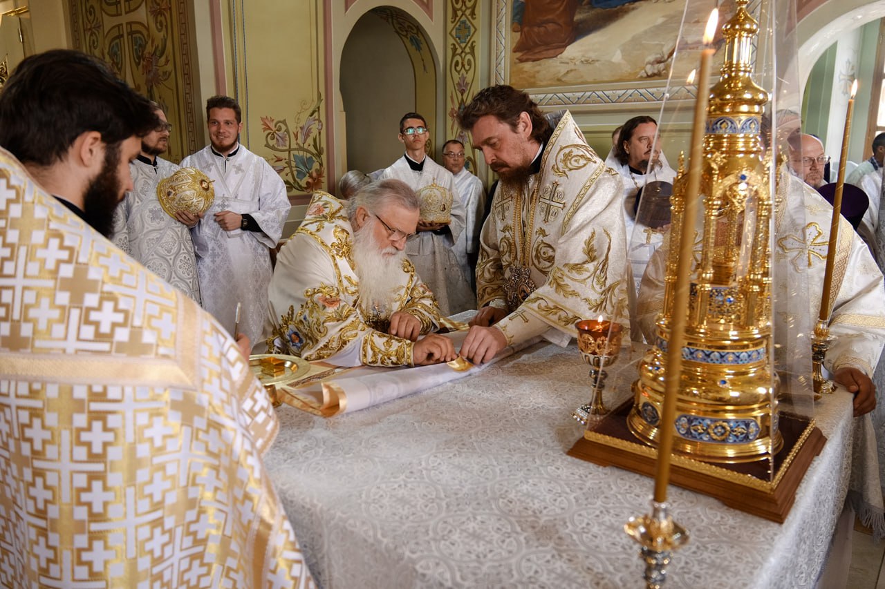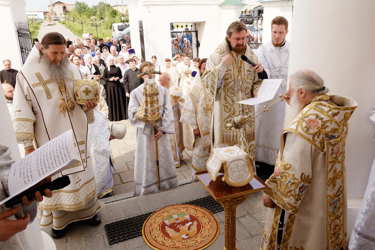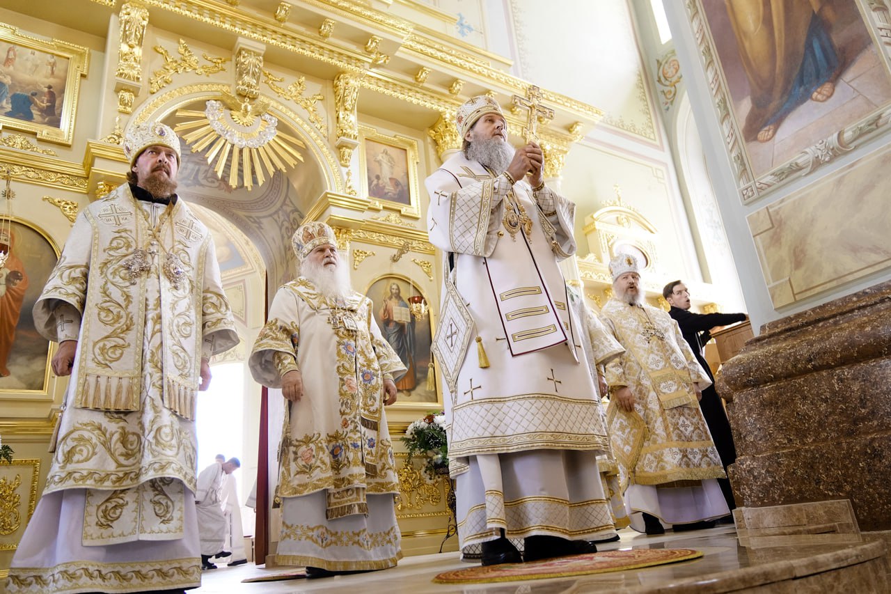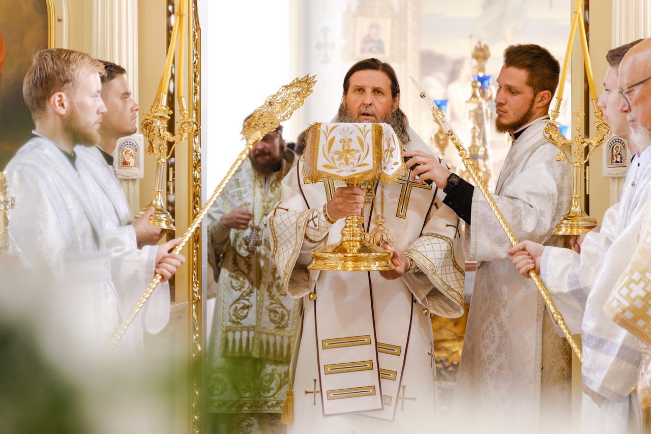 ТРОИЦК. 18 июня 2025 г. В среду седмицы 2-й по Пятидесятнице, день памяти сщмч. Дорофея, епископа Тирского, епископ Орский и Гайский Ириней сослужил митрополиту Ташкентскому и Узбекистанскому Викентию за Великим освящением и Божественной литургией в Свято-Троицком кафедральном соборе.