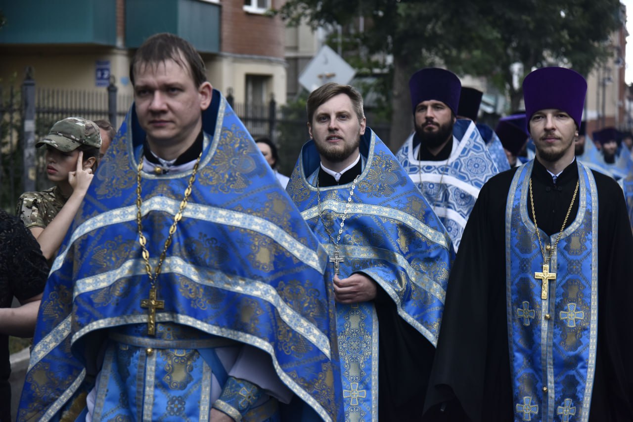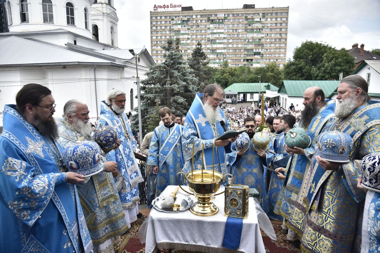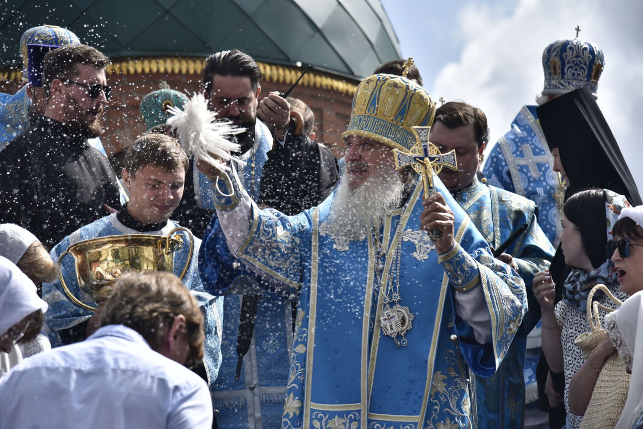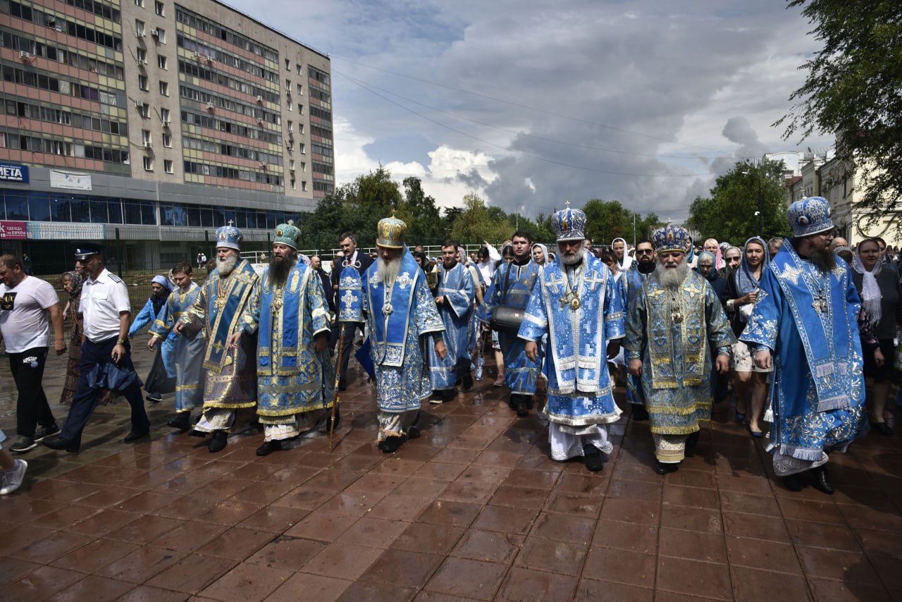 По заамвонной молитве архипастыри совершили водосвятный молебен на соборной площади. После богослужения начался ежегодный общегородской Крестный ход по традиционному маршруту: Никольский собор – Поклонный Крест у Дома Советов – место бывшего Петропавловского храма на ул. Советской – Оренбургская духовная семинария.