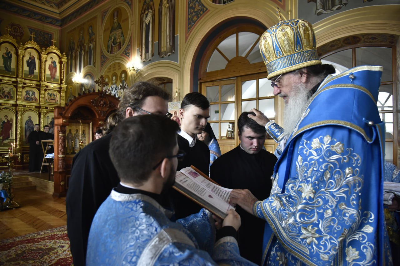 Перед Божественной литургией по сложившейся традиции митрополит Петр совершил хиротесию во чтецов над выпускниками Духовной школы. Первой степени священства были удостоены выпускники бакалавриата очной формы обучения Гудков Виктор и Пантилимонов Димитрий, а также выпускник магистратуры Даниил Владимирович Исаев.