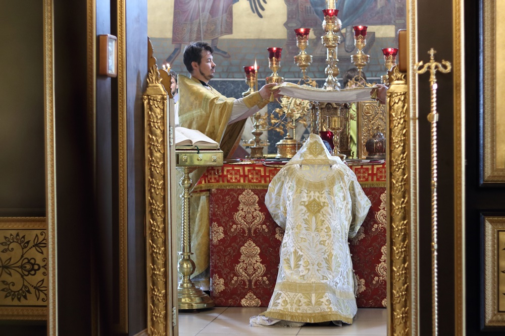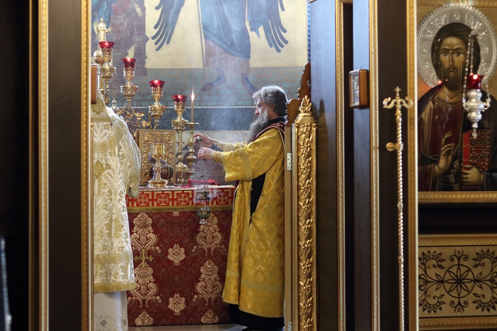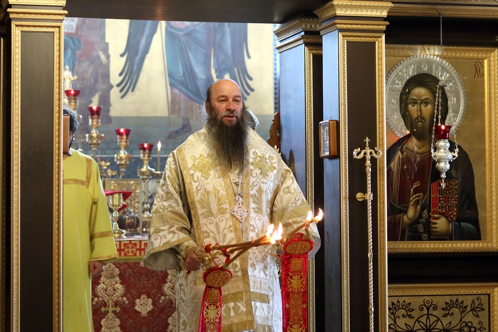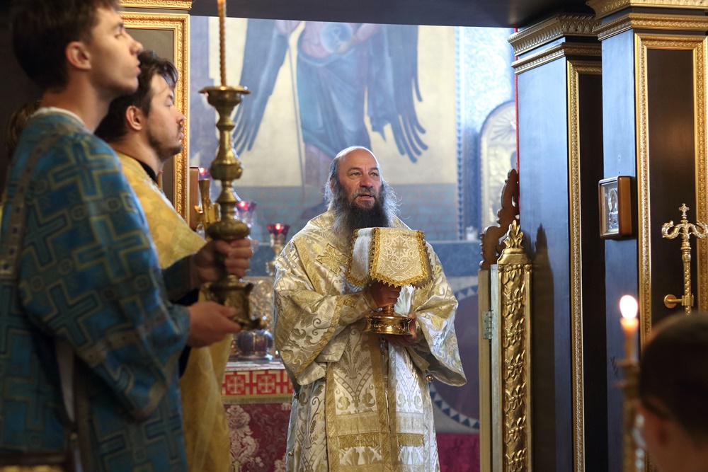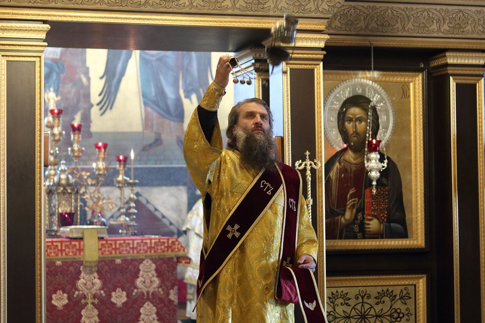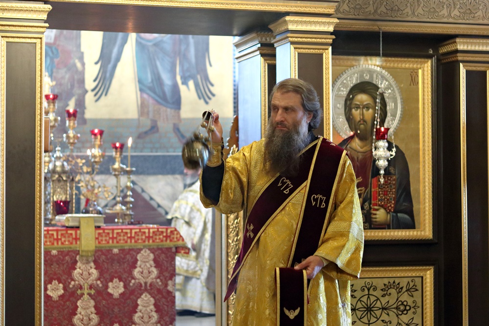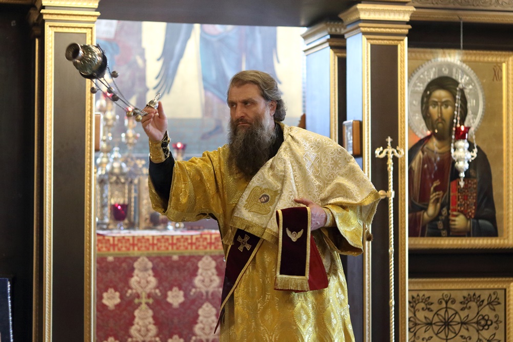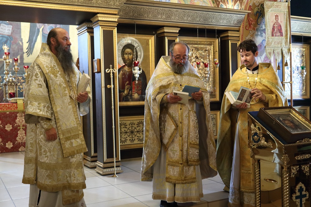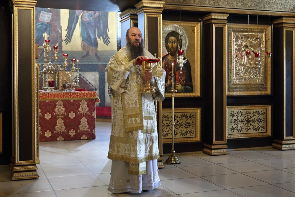 Ему сослужили настоятель собора, директор катехизаторско-миссионерских курсов протоиерей Александр Куцов, клирик Никольского храма г. Медногорска (мкр. Южный) священник Георгий Чернявский и клирик собора архидиакон Викентий (Геницэ).