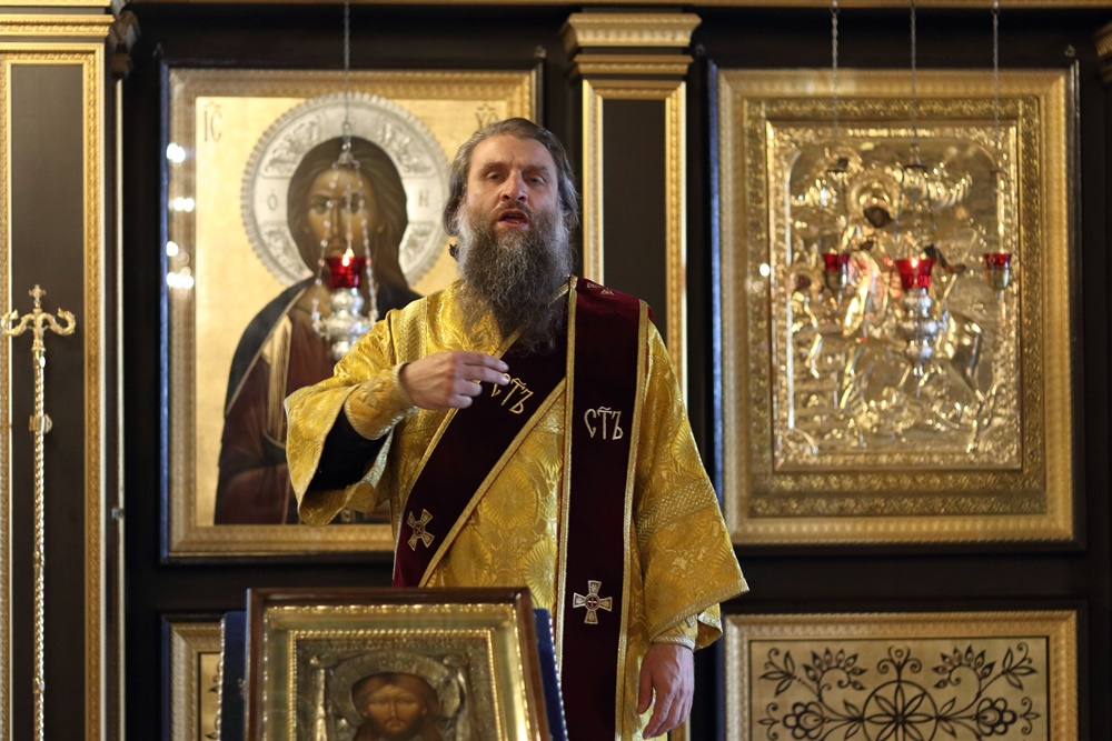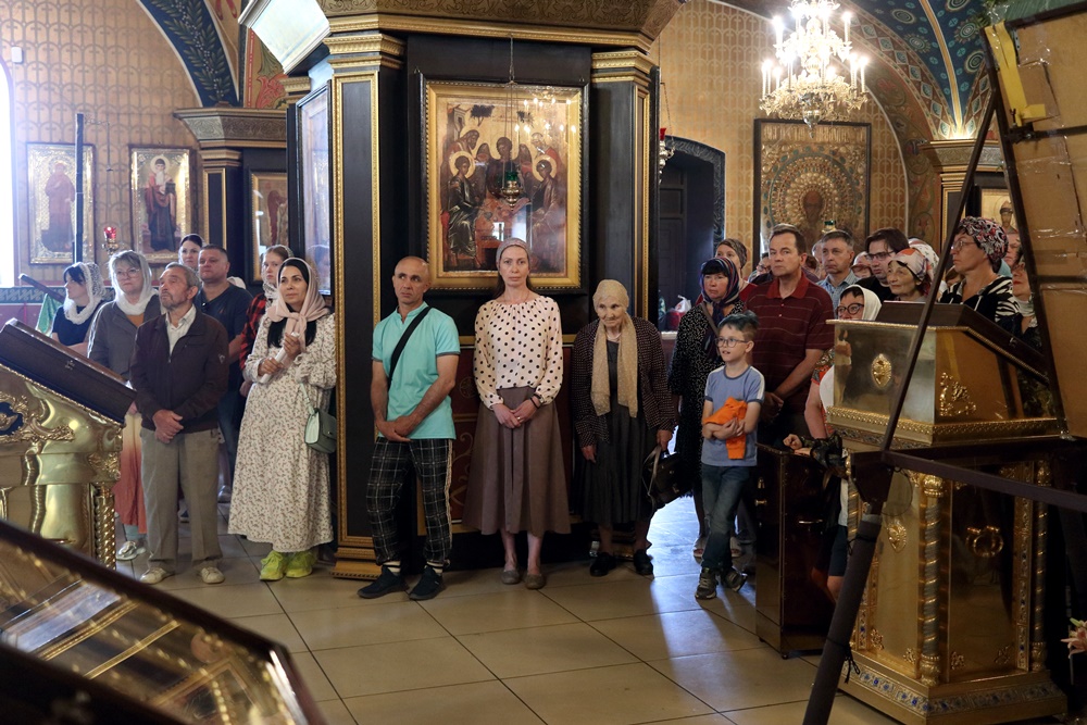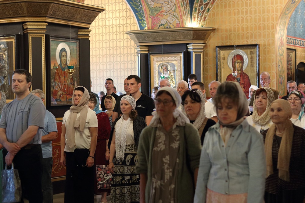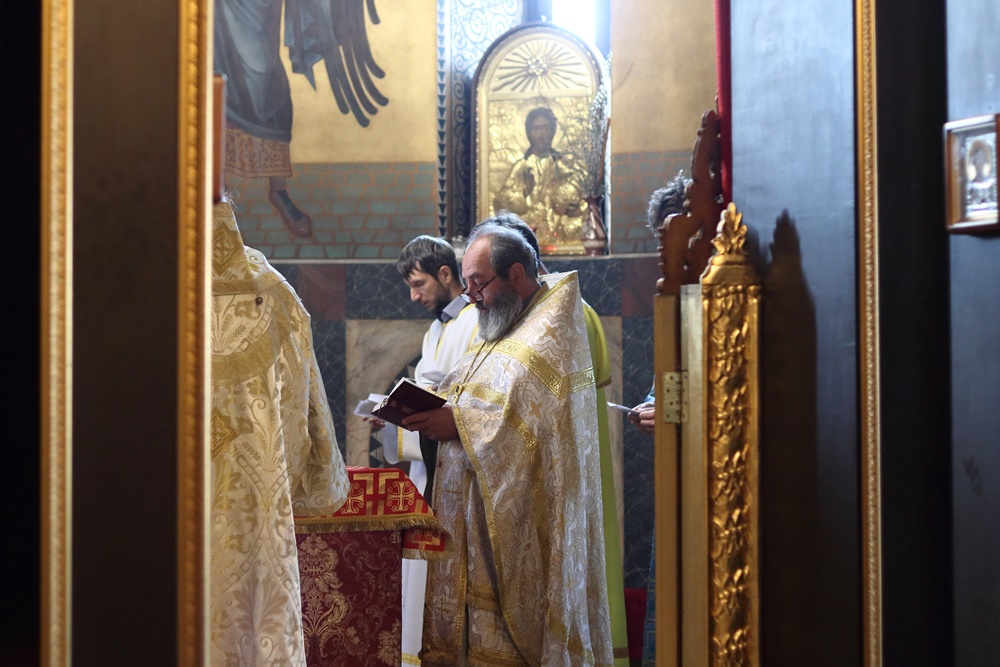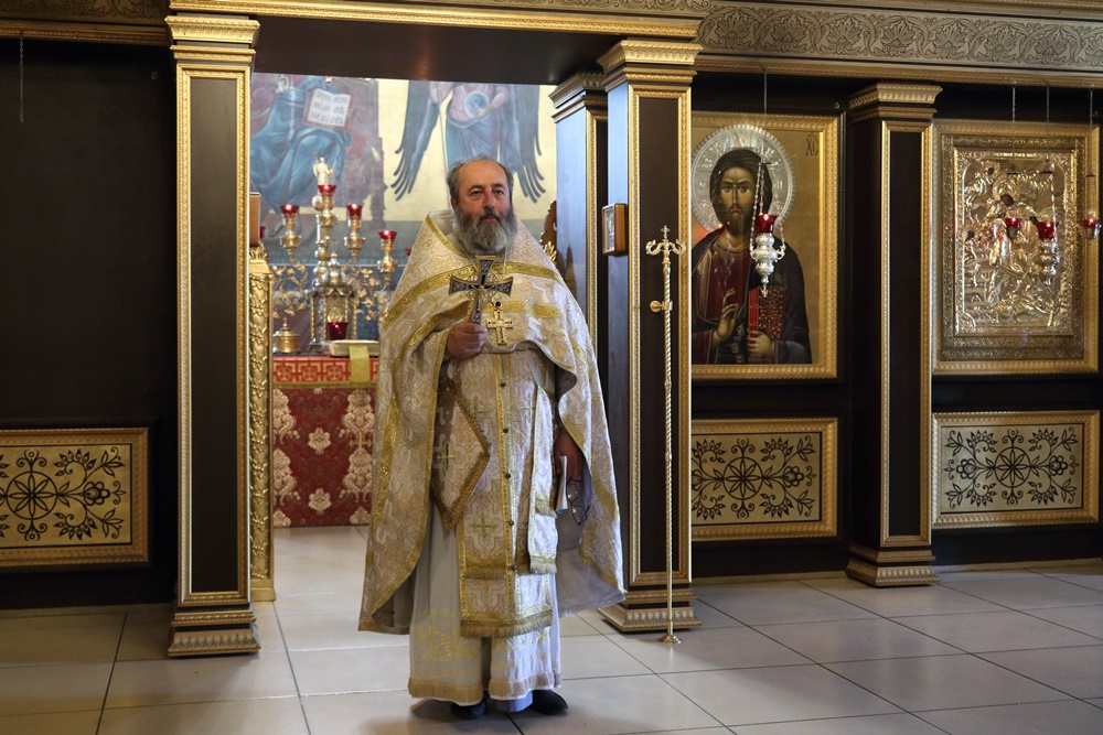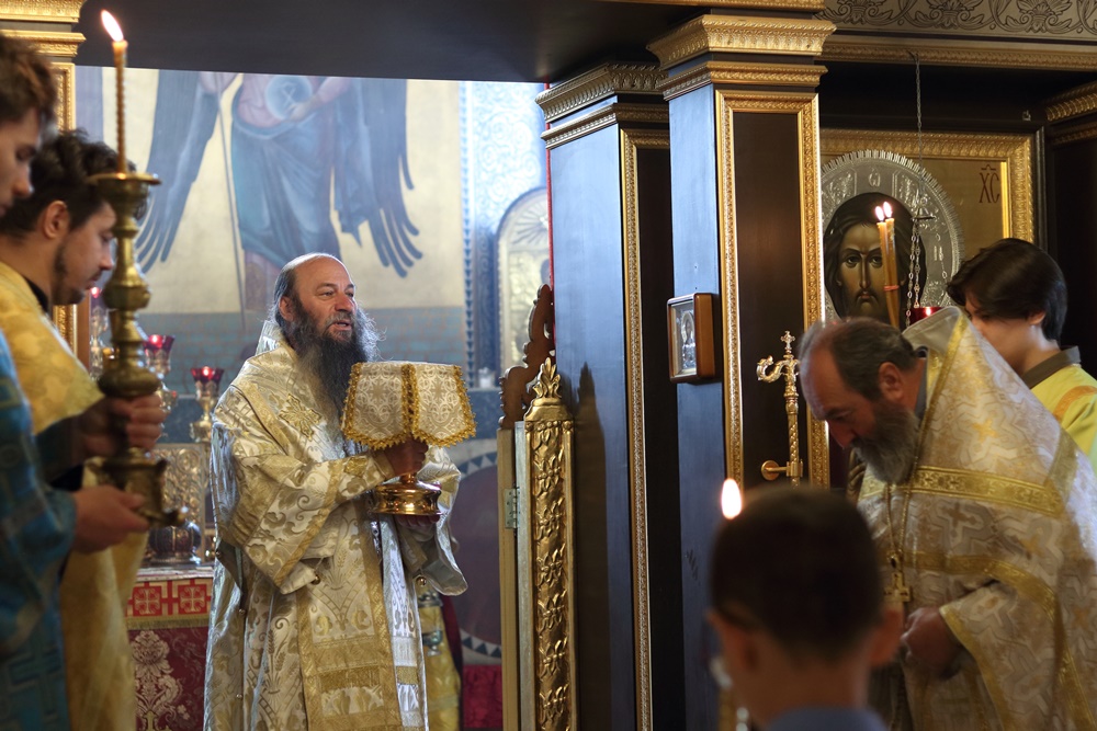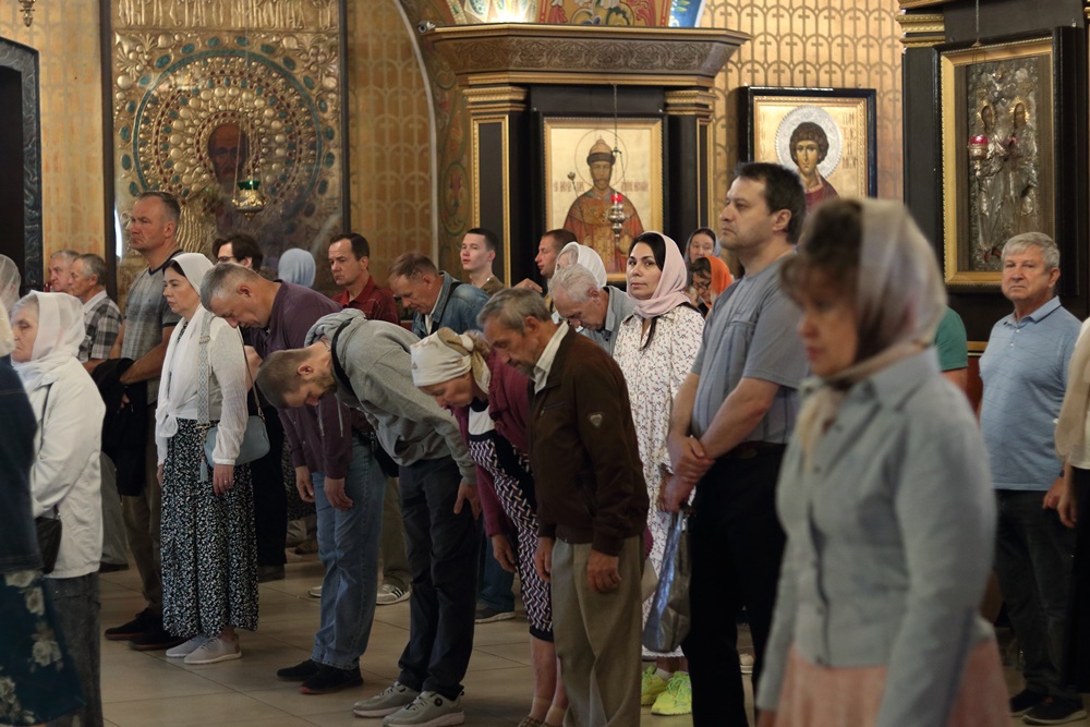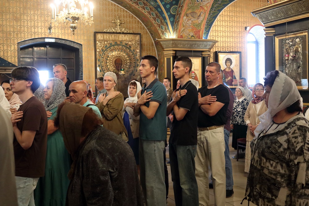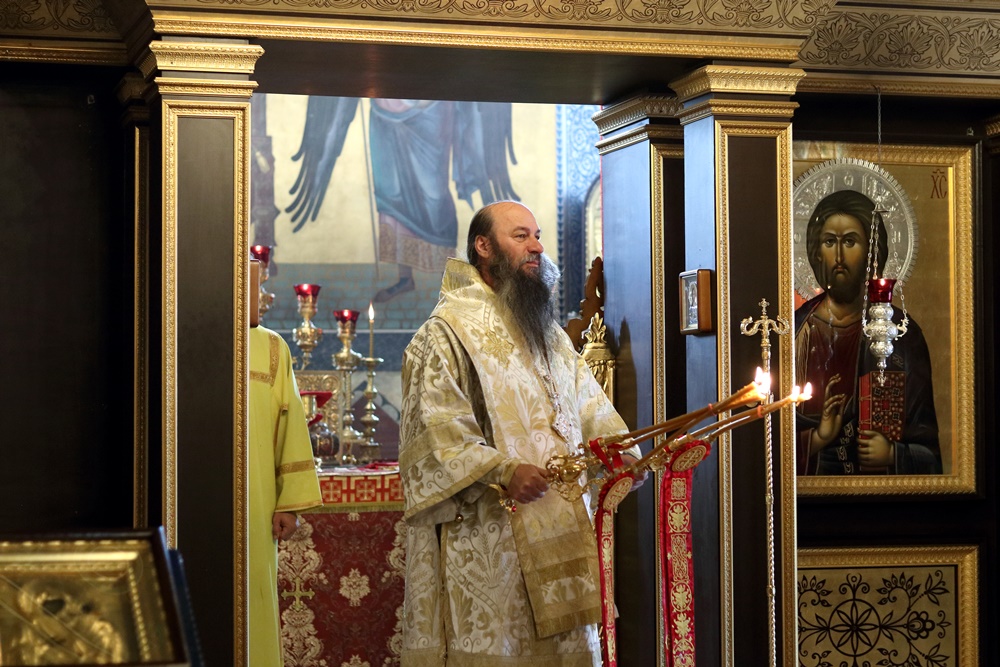 Ему сослужили настоятель собора, директор катехизаторско-миссионерских курсов протоиерей Александр Куцов, клирик Никольского храма г. Медногорска (мкр. Южный) священник Георгий Чернявский и клирик собора архидиакон Викентий (Геницэ).