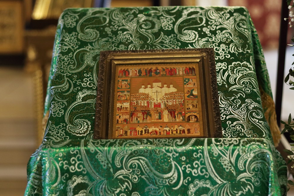 По окончании Божественной литургии Владыка произнес проповедь, посвященную празднику всех святых, в земле Русской просиявших, и скорбной дате для нашего Отечества - дню начала Великой Отечественной войны.