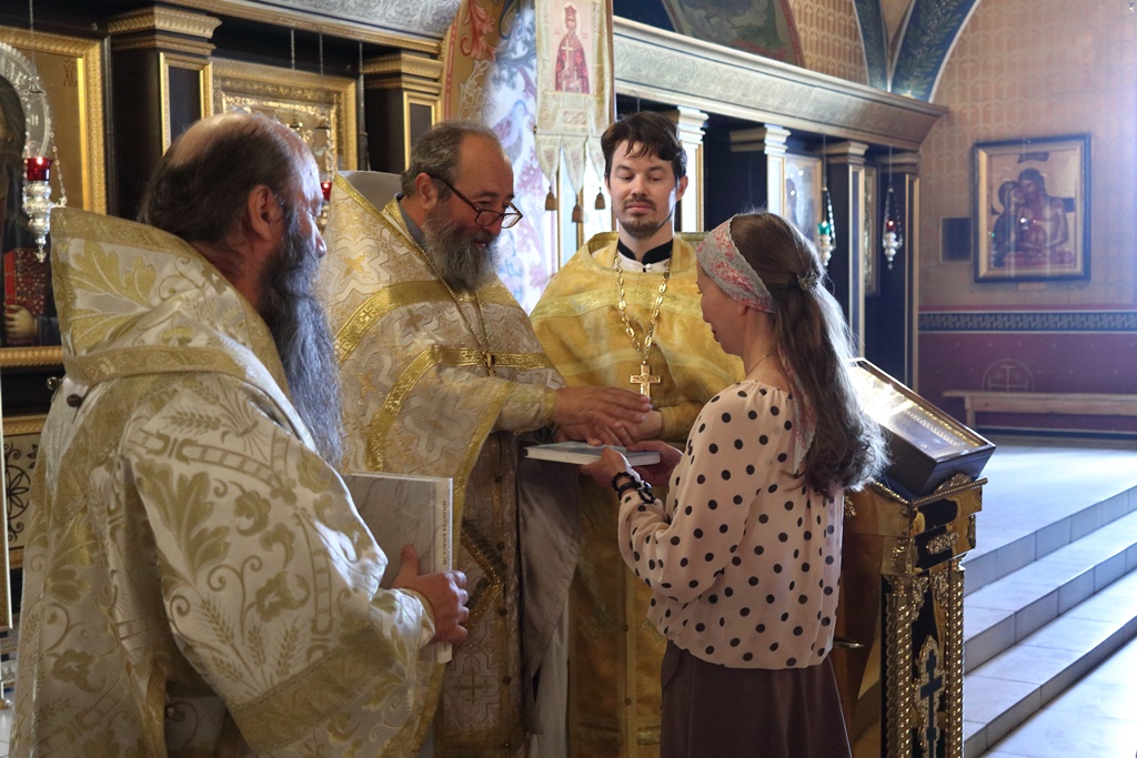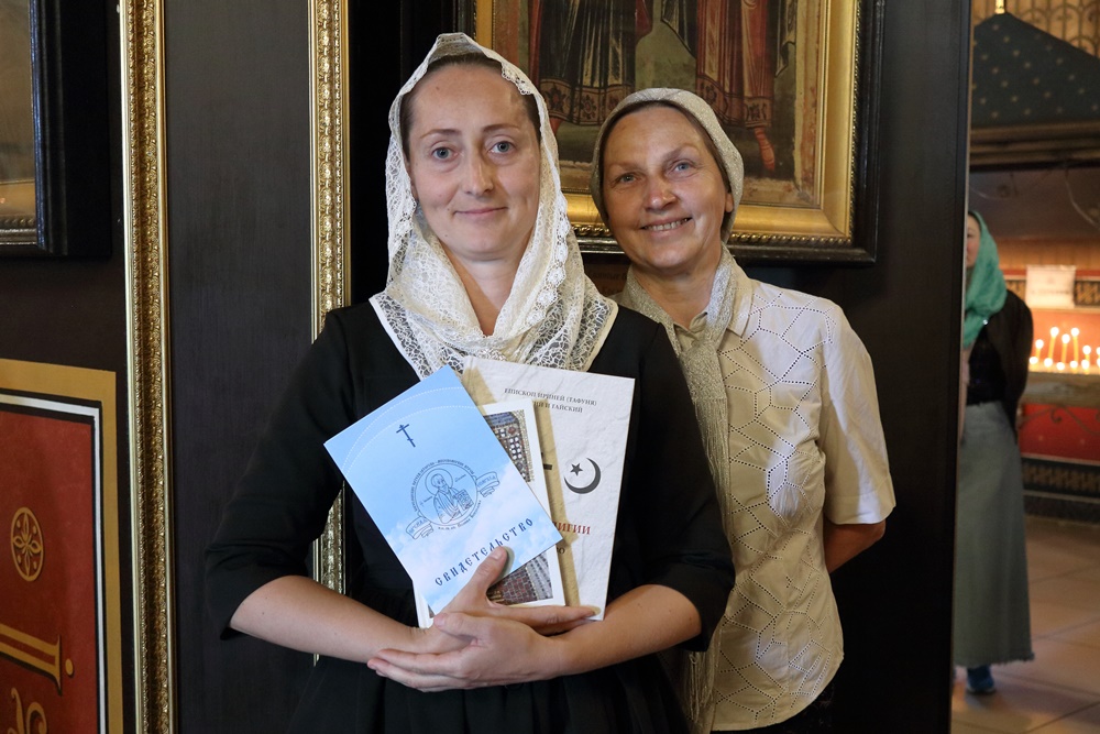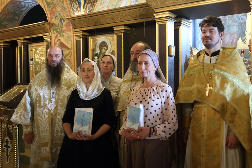 Затем епископ Ириней, протоиерей Александр Куцов и священник Георгий Чернявский вручили свидетельства об окончании курсов выпускницам: Евгении Горюновой и Марине Овдиной.