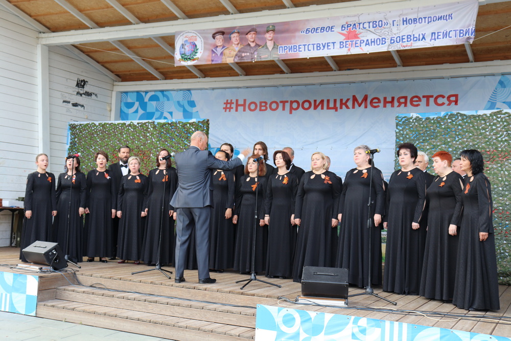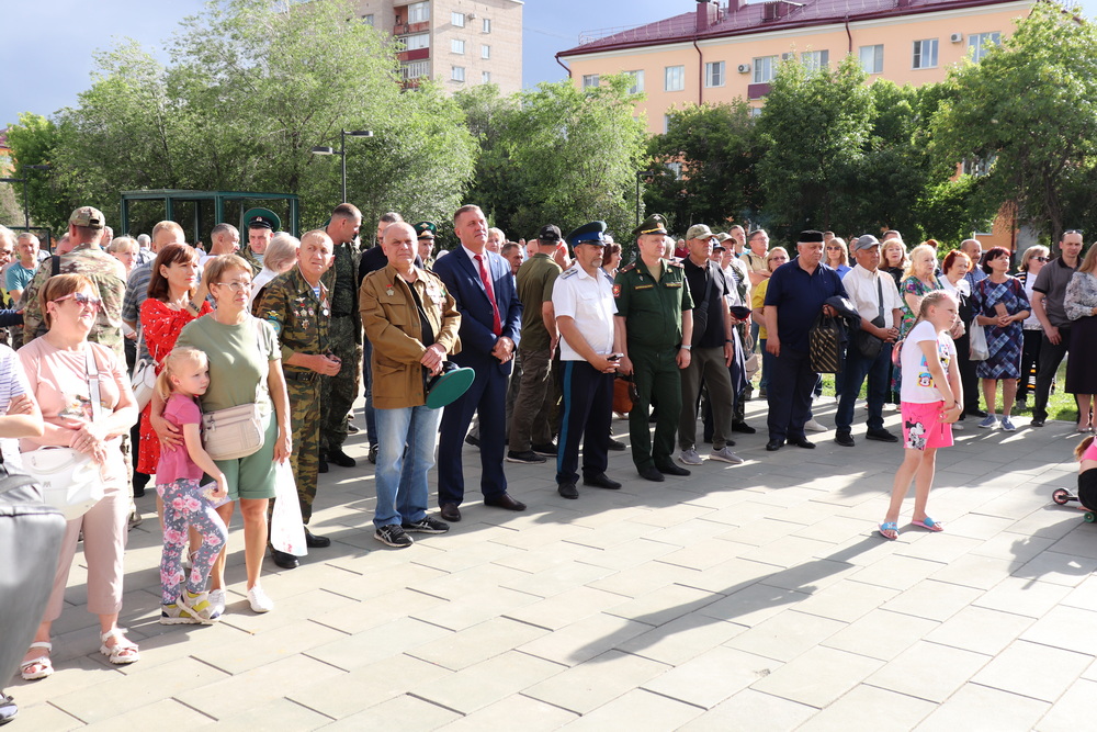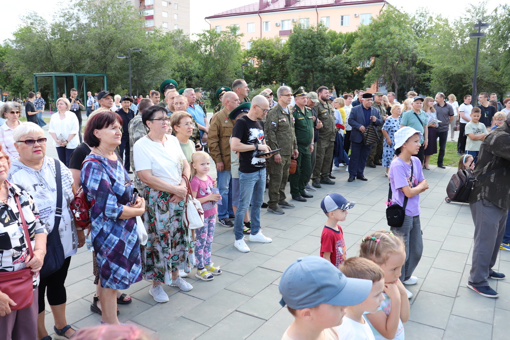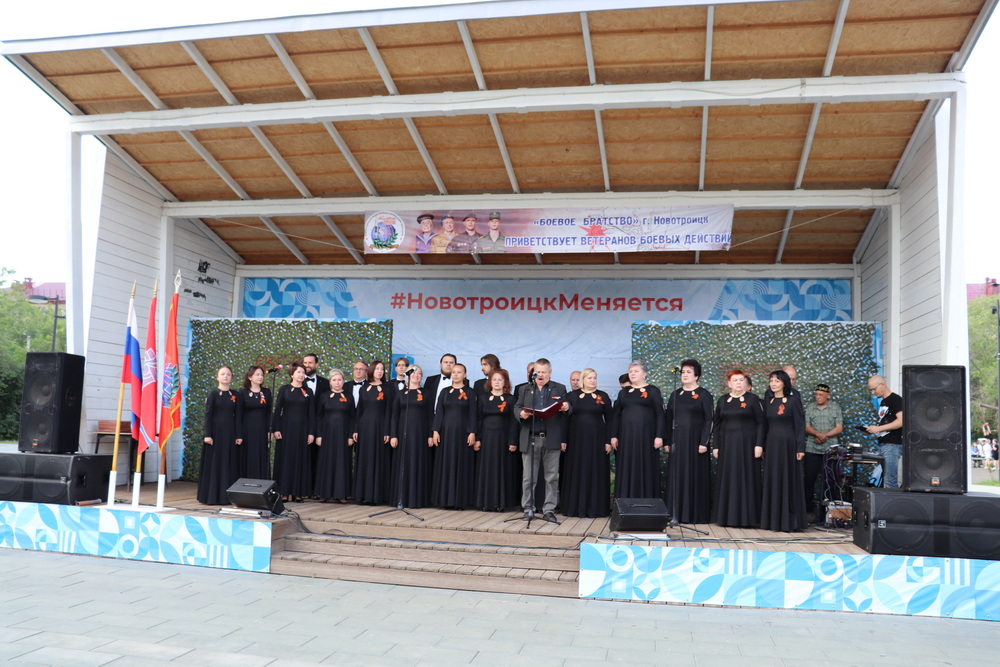 НОВОТРОИЦК. 1 июля 2025 г. В День ветеранов боевых действий, в сквере на площади Ленина прошел концерт патриотической песни, посвященный воинам, вставшим на защиту нашей Родины, в котором приняли участие воспитанники детской воскресной школы при Петропавловском храме.