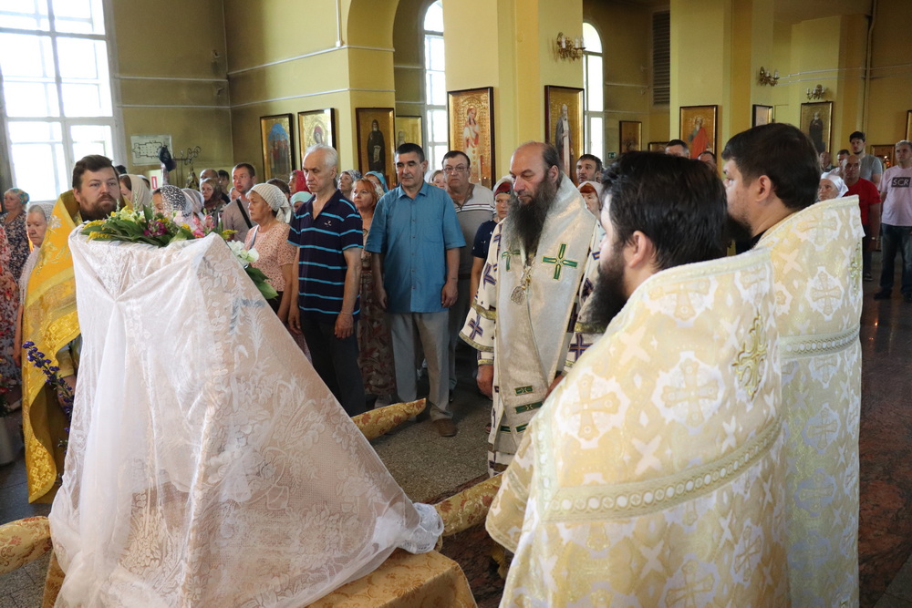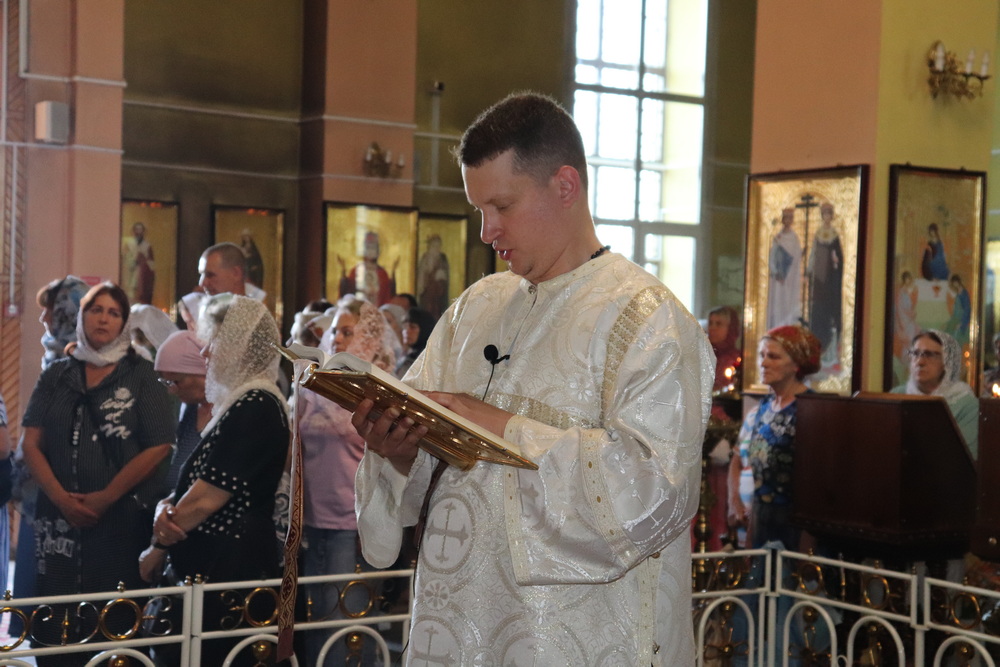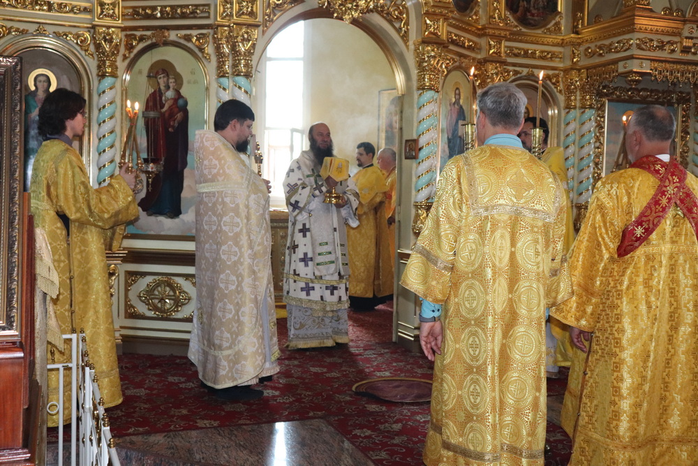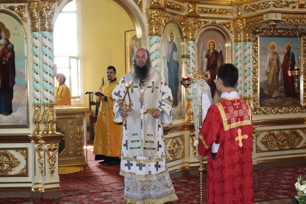 Его Преосвященству сослужил настоятель храма первоверховных апостолов Петра и Павла протоиерей Сергий Кваша, настоятель храма Преображения Господня г. Орска священник Михаил Яковлев, клирики Петропавловского храма священники Никита Кваша и Даниил Желтухин, а также диакон Николай Кваша.