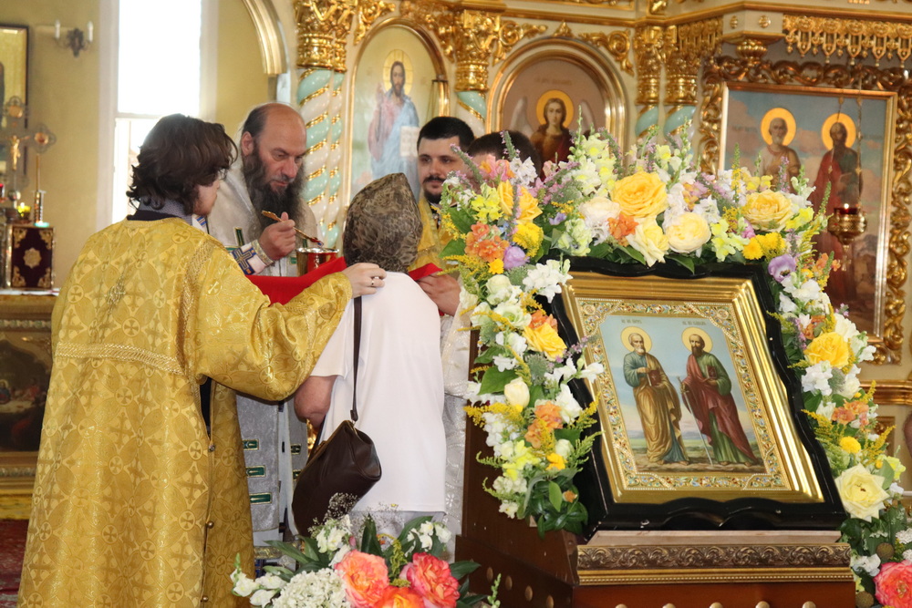 НОВОТРОИЦК. 12 июля 2025 г. В субботу седмицы 5-ой по Пятидесятнице, день памяти святых первоверховных апостолов Петра и Павла, епископ Орский и Гайский Ириней возглавил Божественную литургию в Петропавловском храме.