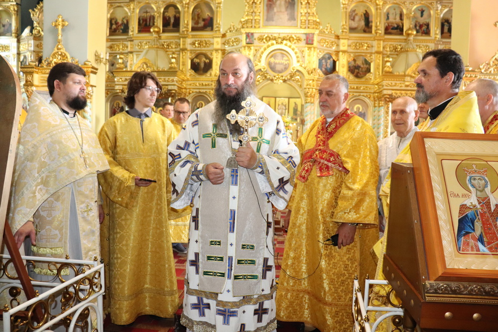 Затем Преосвященнейший владыка поздравил всех присутствующих с престольным праздником и обратился с архипастырским словом.