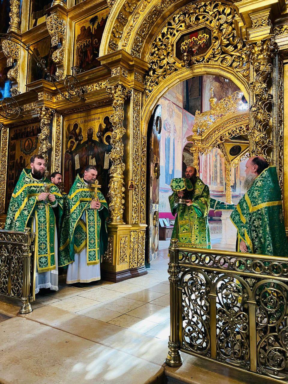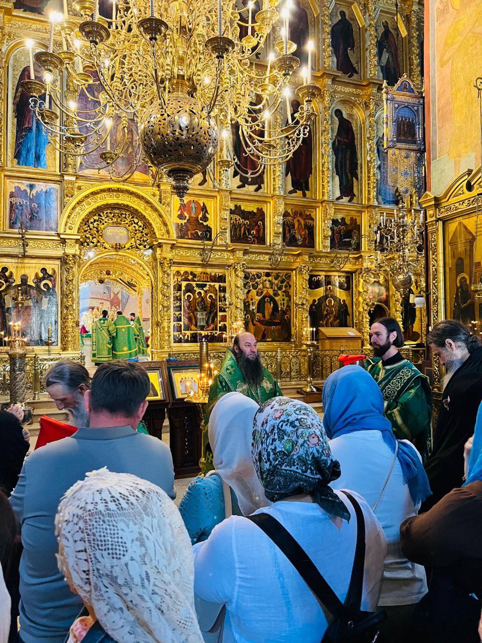 СЕРГИЕВ ПОСАД. 17 июля 2025 г. Преосвященнейший Ириней, епископ Орский и Гайский возглавил Божественную литургию, а накануне вечером – всенощное бдение в Успенском соборе обители.
