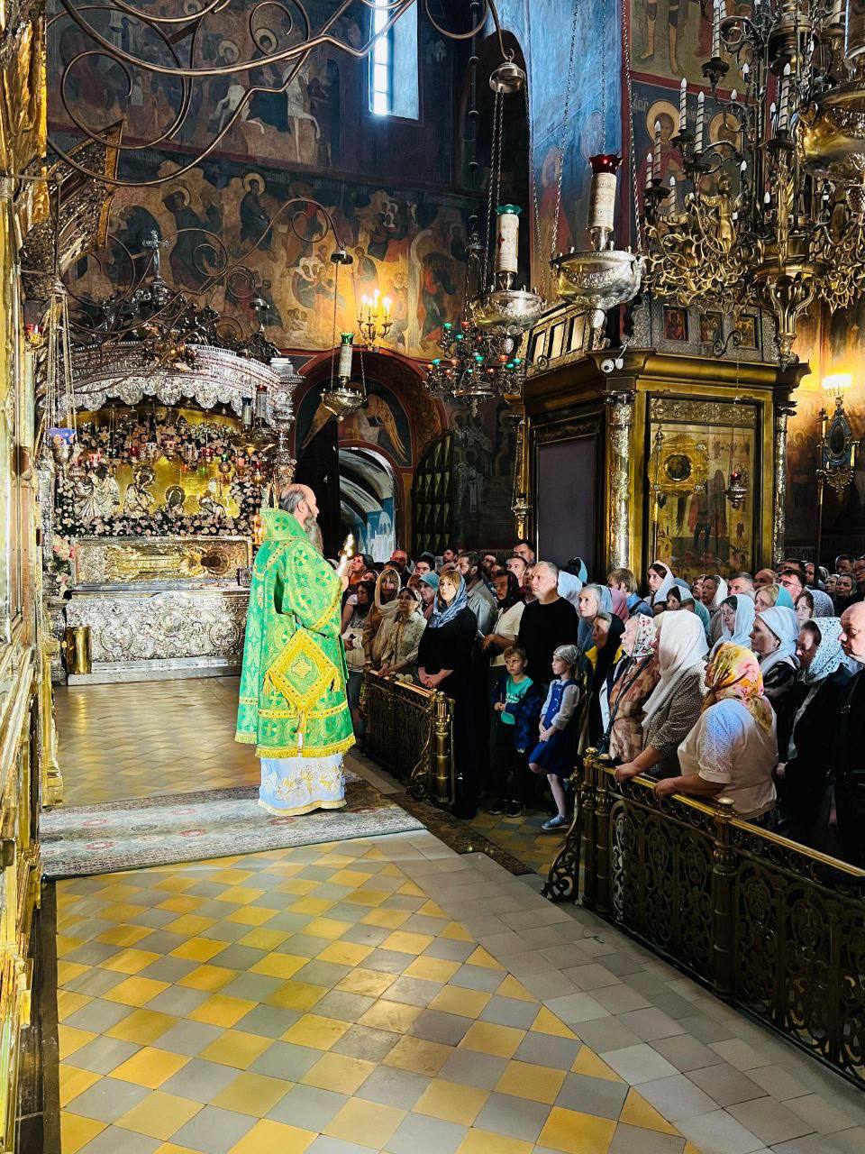 СЕРГИЕВ ПОСАД. 19 июля 2025 г. В субботу седмицы 6-й по Пятидесятнице, день памяти собора Радонежских святых, епископ орский и Гайский Ириней возглавил Божественную литургию в Троицком, а накануне вечером – всенощное бдение в Успенском соборе лавры.