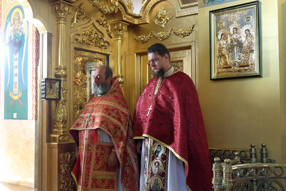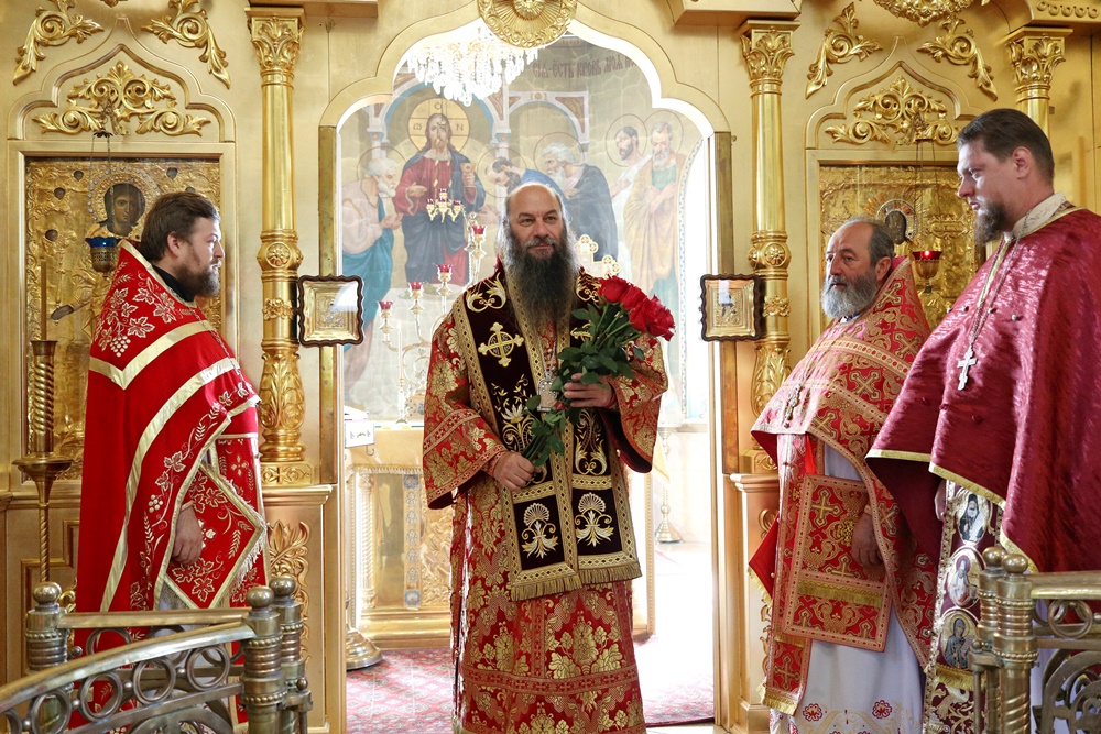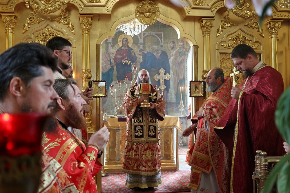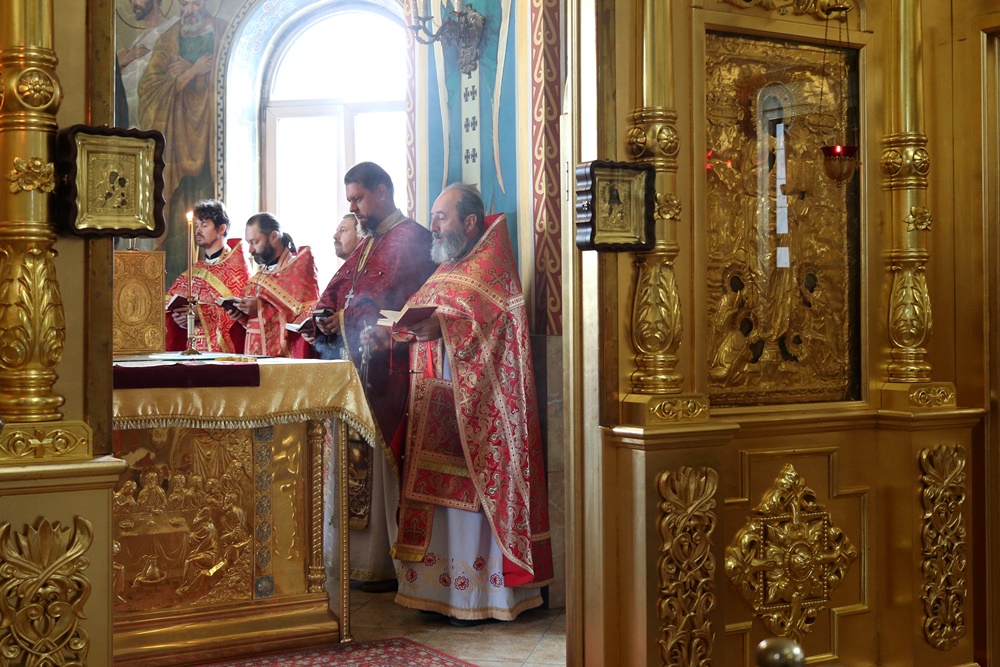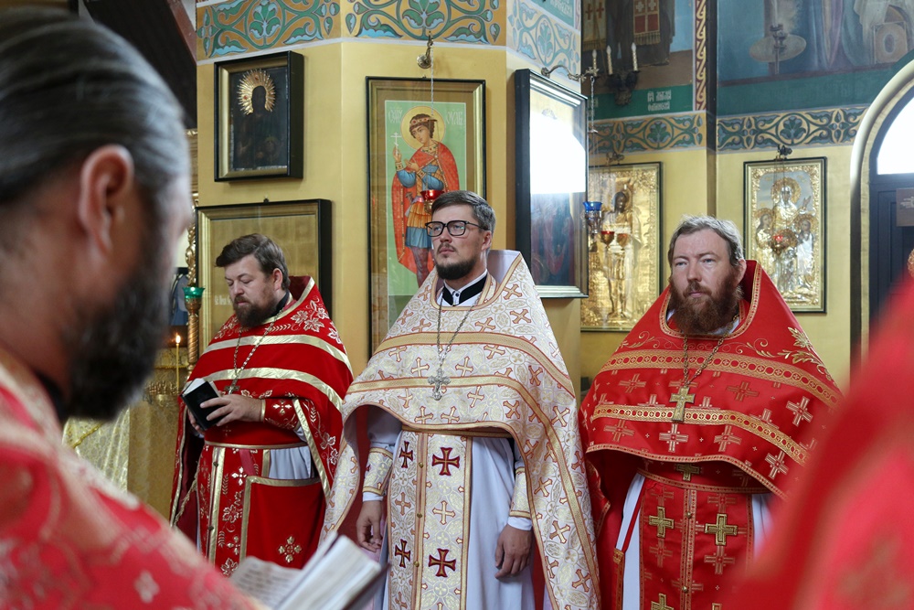 Его Преосвященстсву сослужили секретарь епархии протоиерей Александр Куцов, священники Михаил Яковлев, Александр Курсаков, Максим Бражников, Сергий Новиков, Геннадий Новиков, Алексий Атамасов, Александр Карпунин, Георгий Чернявский, архидиакон Викентий (Геницэ).