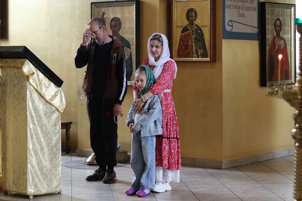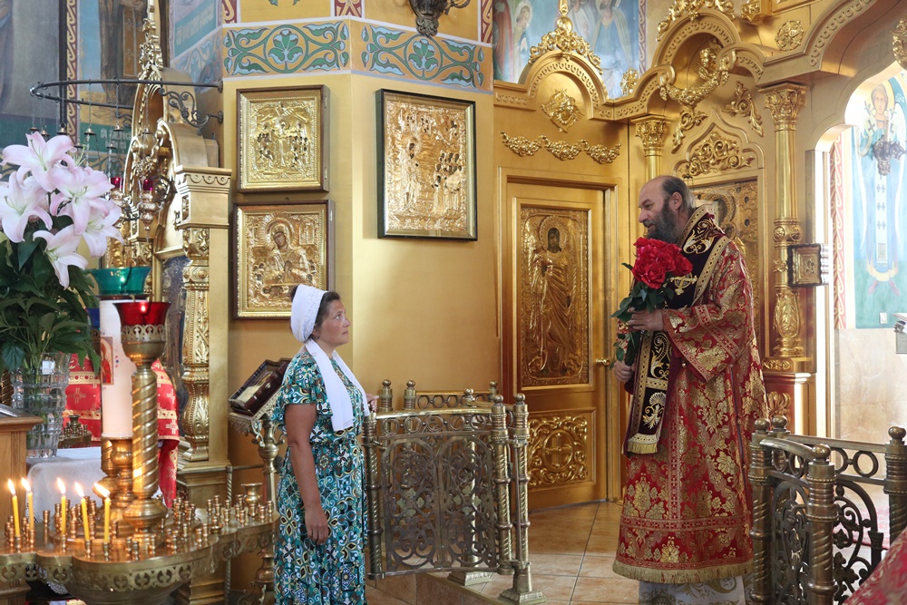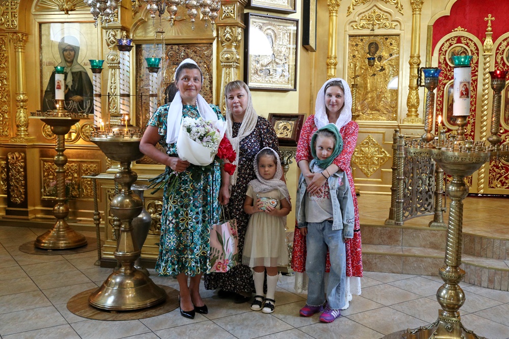 По завершении Литургии правящий архиерей и священники тепло поздравили с днем Ангела регента храмового хора матушку Юлию Куцову.