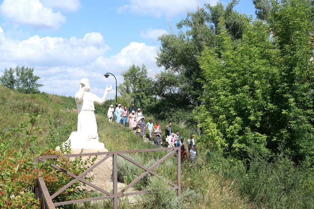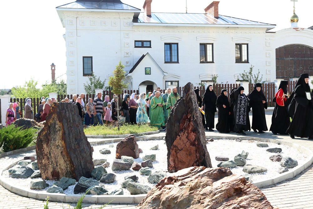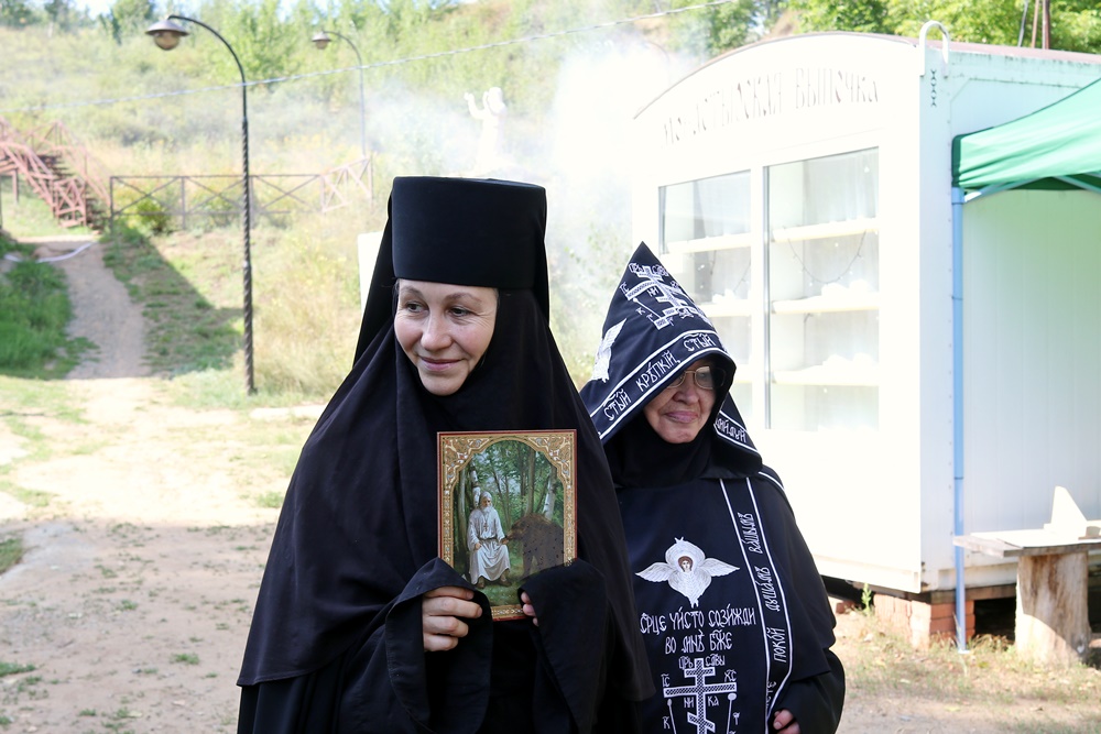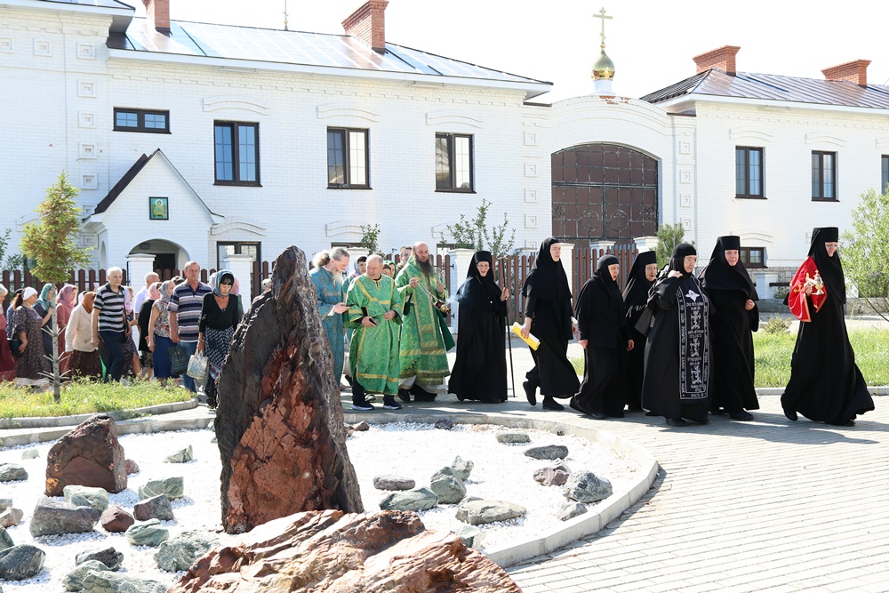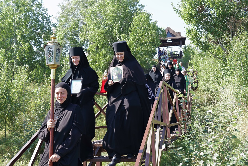 После отпуста Божественной литургии правящий архиерей возглавил крестный ход от монастыря к часовне преподобного Серафима Саровского. В часовне был совершен водосвятный молебен, а затем крестный ход продолжился по Богородичной дорожке. В конце маршрута молящиеся вернулись в Серафимовский храм монастыря, где епископ Ириней в торжественной обстановке наградил сотрудника Орской епархии Ангелину Бледных медалью Табынской иконы Божией Матери III степени.