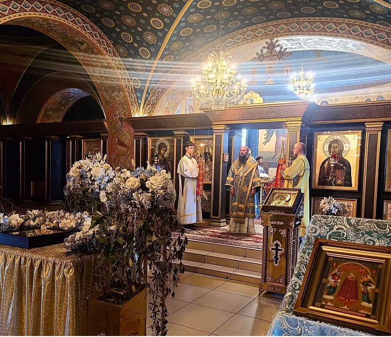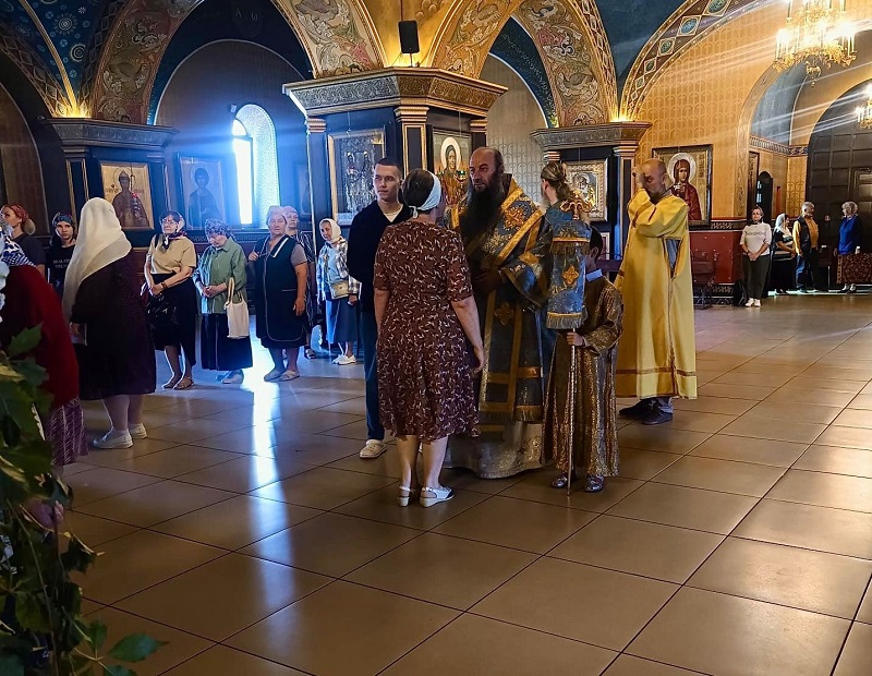 Его Преосвященству сослужили настоятель собора протоиерей Александр Куцов, клирики протоиерей Георгий Кожеватов, священник Сергий Куцов, священник Георгий Чернявский, архидиакон Викентий (Геницэ).
