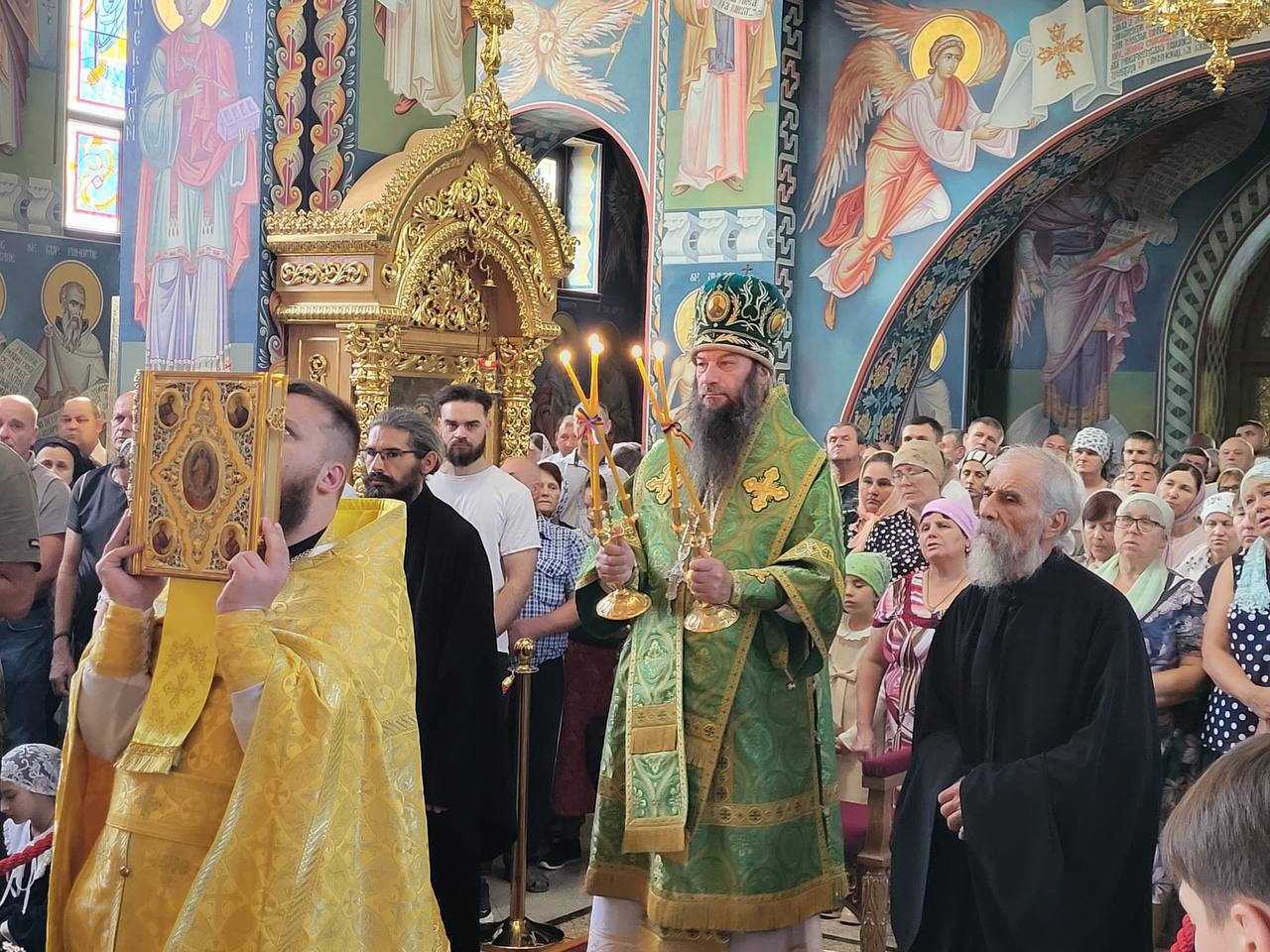 За богослужением епископу Иринею сослужили клирики обители. На всенощном бдении молились настоятельница монастыря игумения Марфа (Кушнир) с сестрами и учащиеся иконописного и регентского отделений, существующих при обители.