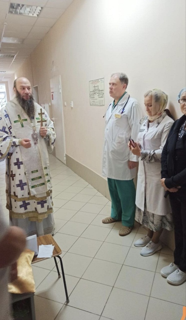 За богослужением молились заведующий отделением Константин Голоядов, представители медицинского персонала отделения и волонтеры сестричества, зарождающегося при учреждении.