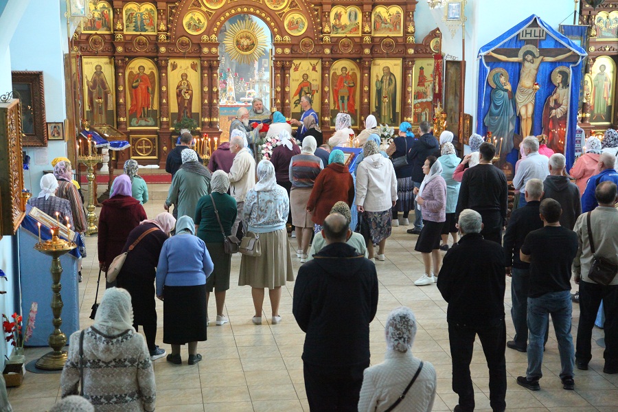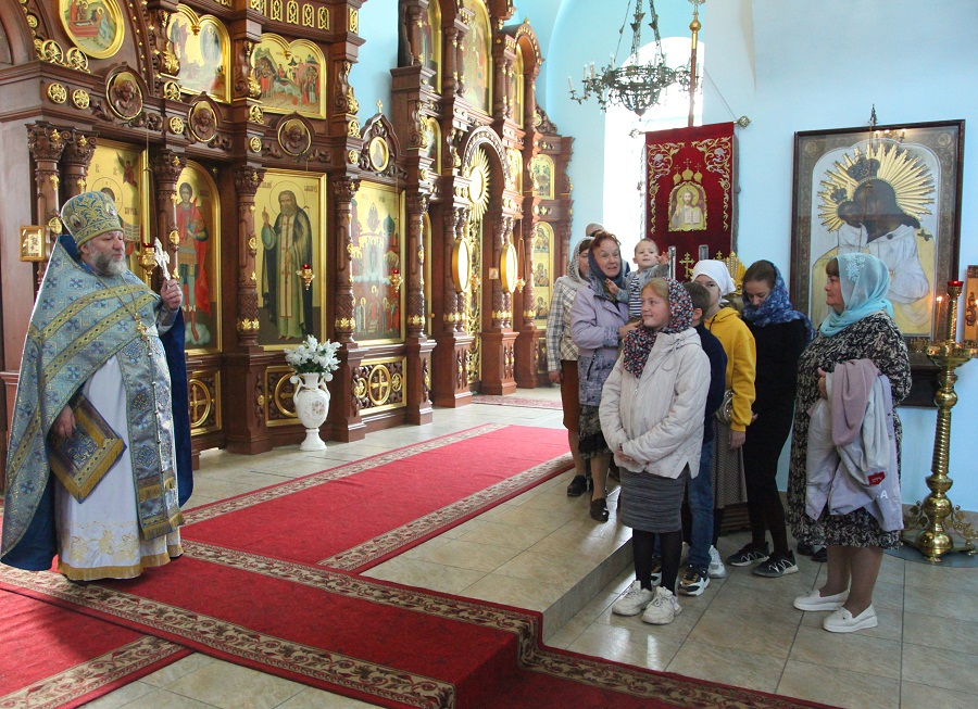 Божественную литургию совершил настоятель храма протоиерей Анатолий Сопига в сослужении диакона Иоанна Алексеева. По сугубой ектении с умилением сердец совершили молитву о Святой Руси. Принимал исповедь священник Олег Соболевский. После отпуста Литургии настоятель храма протоиерей Анатолий Сопига поздравил всех с праздником и обратился к молящимся с проповедью о празднике Рождества Пресвятой Богородицы. Затем священнослужители совершили молебное пение перед иконой праздника.