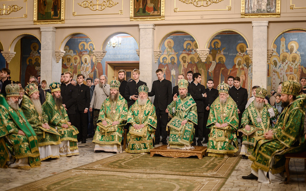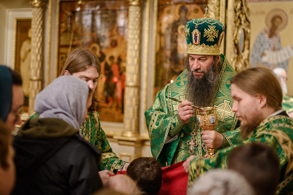 Вечером того же дня Преосвященнейший Ириней молился за всенощным бдением в Покровском академическом храме.