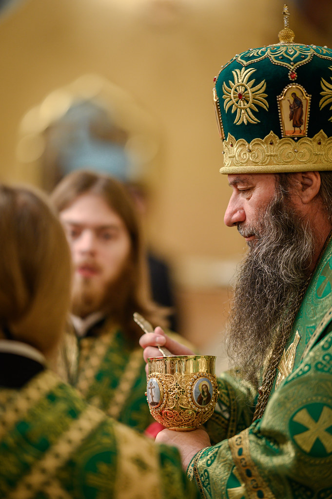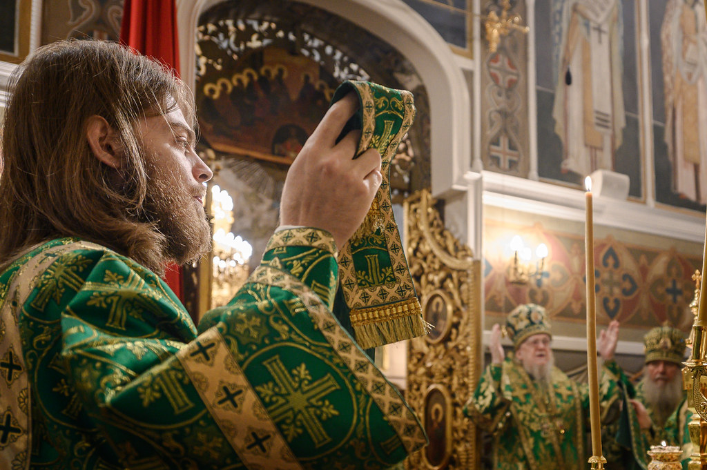 Перед причастием с проповедью к участникам богослужения обратился преподаватель МДА архимандрит Симеон (Томачинский).