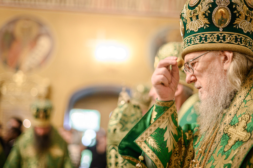 В завершение Литургии архиереи и духовенство совершили славление преподобному Сергию у праздничного образа. Затем с архипастырским словом обратился митрополит Вениамин.