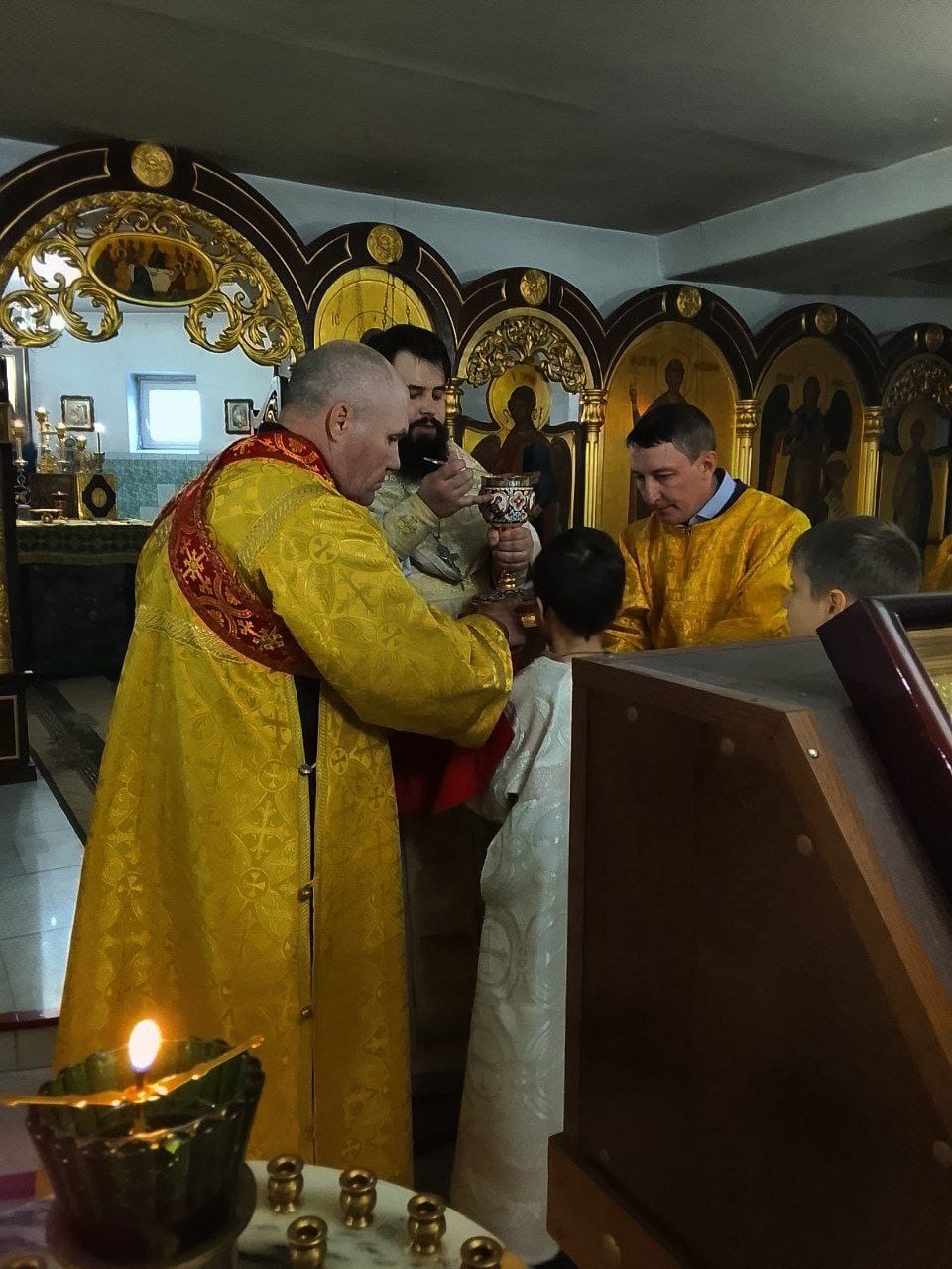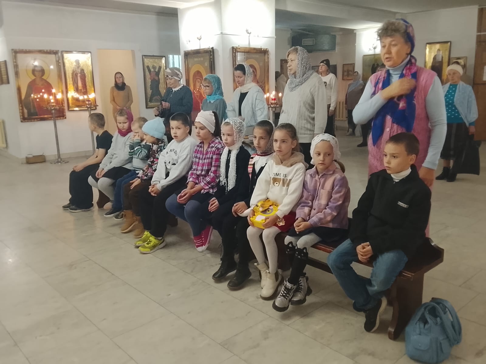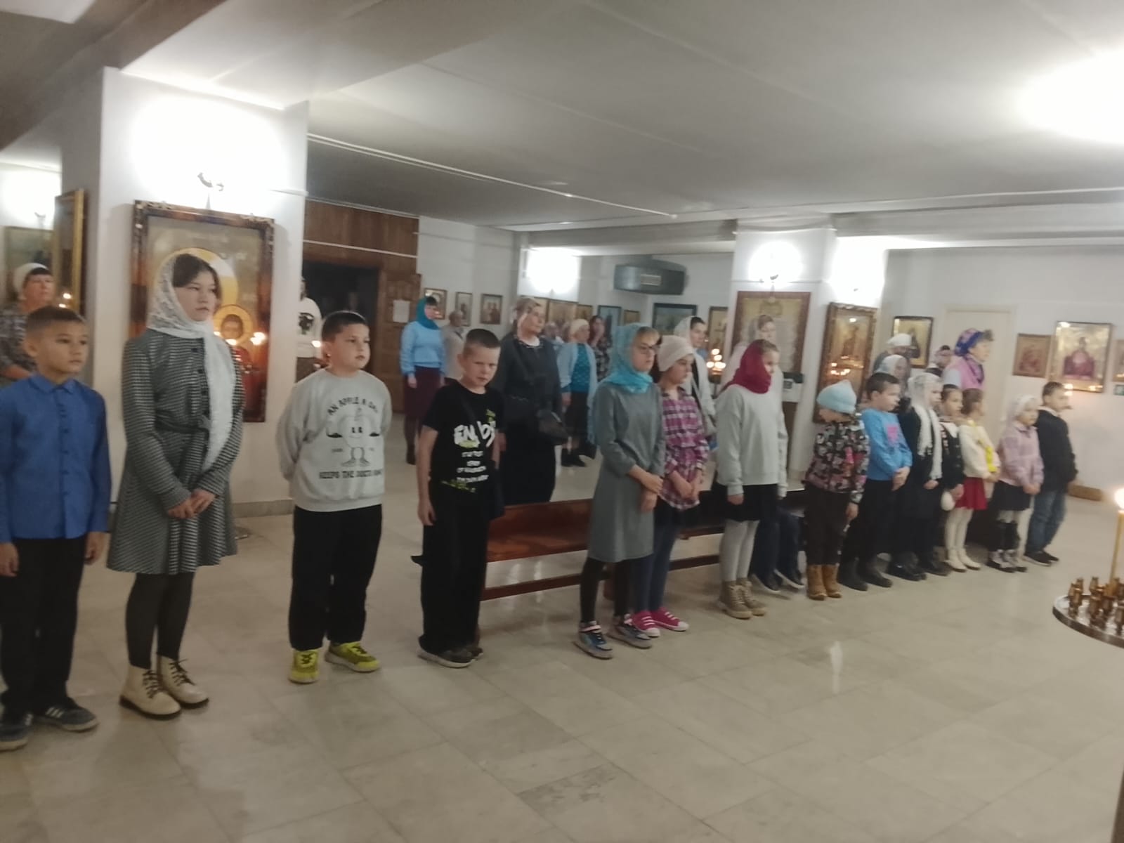 НОВОТРОИЦК. 12 октября 2025 г. В неделю 18-ю по Пятидесятнице, в нижнем храме Петропавловского собора, освященного в честь св. благоверного князя Александра Невского прошла первая Божественная литургия для детей воскресной школы в этом новом учебном году.