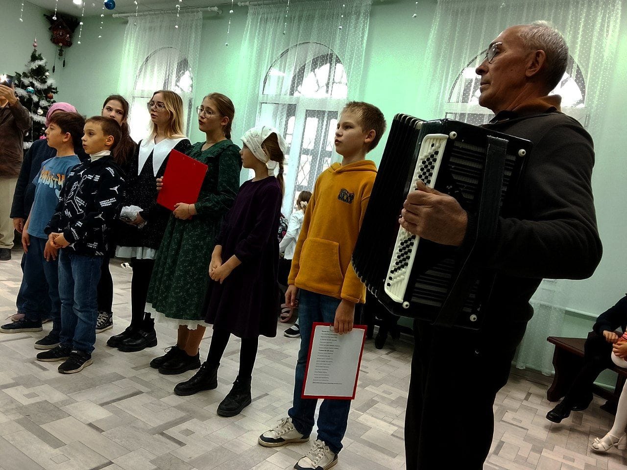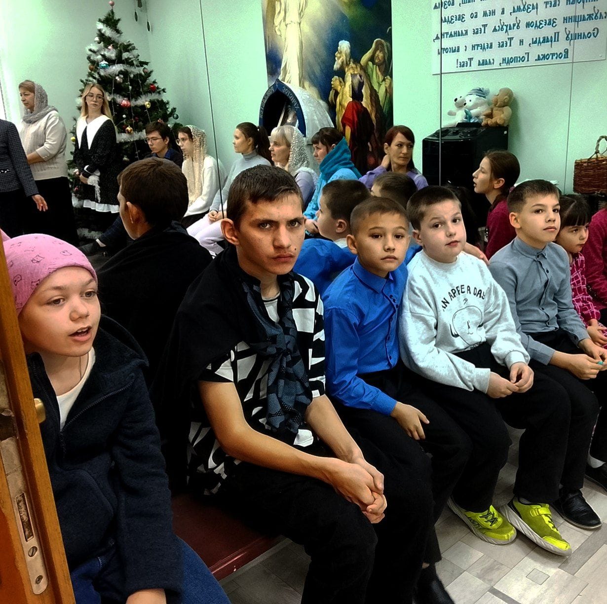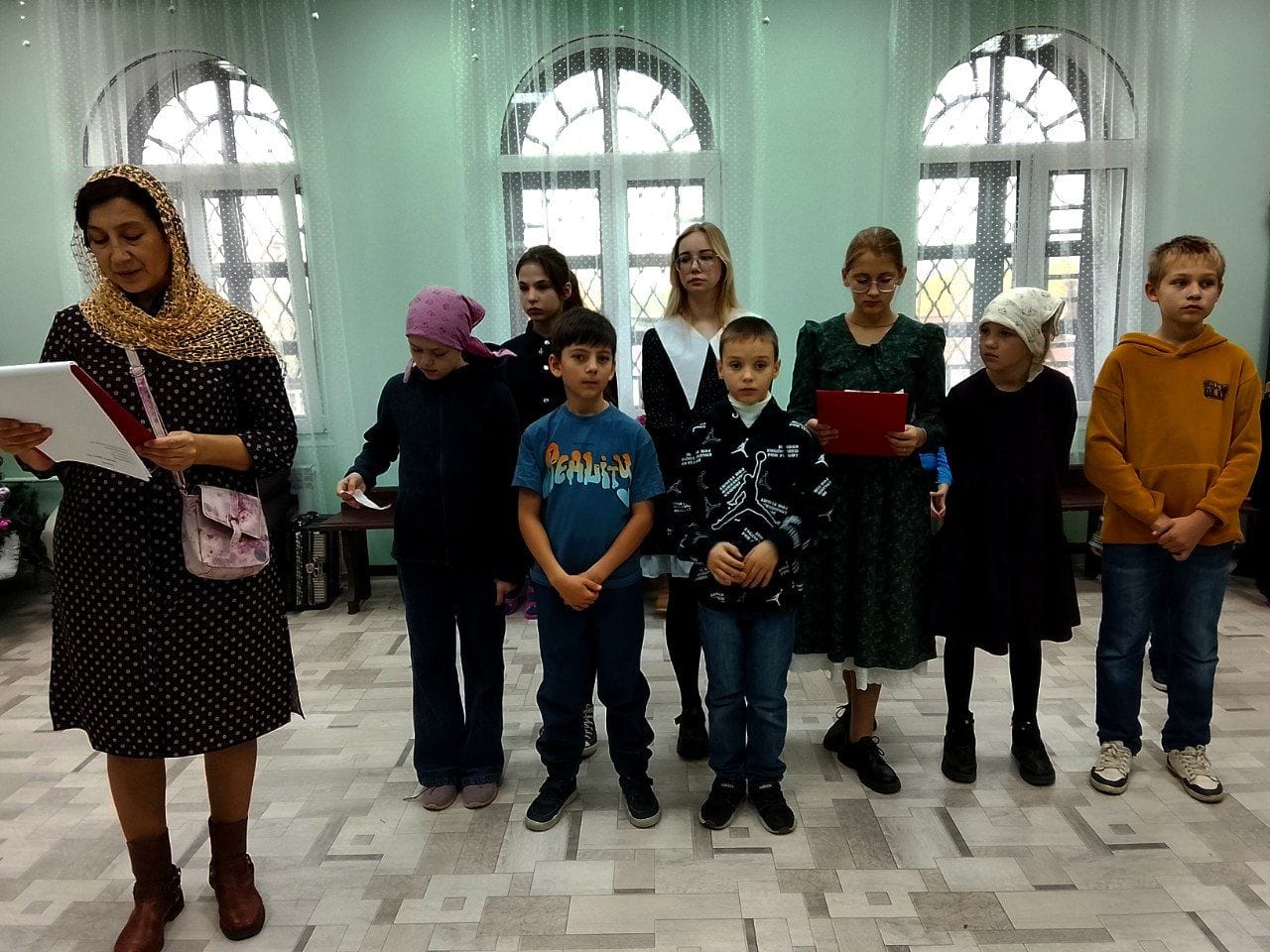 Затем, по окончании Богослужения в здании воскресной школе состоялось мероприятие, на котором ребята исполняли церковные песнопения и читали стихи.