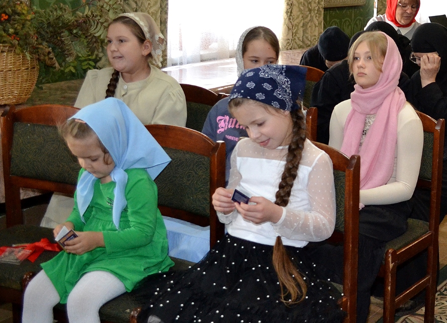 Настоятельница монастыря игуменья Ксения рассказала о том, как чтение Священного Писания повлияло на судьбу одного мальчика – будущего святого преподобного Гавриила Ургебадзе. «Очень хочется пожелать и вам как можно раньше встретиться своим сердечком с Богом, – напутствовала ребят матушка Ксения. – Читайте и стремитесь стать святым человеком, потому что это нам всем заповедано Самим Богом».