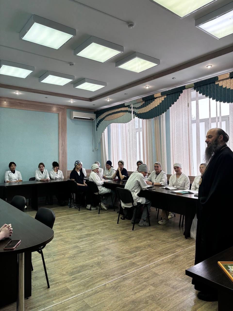20 октября епископ Ириней вместе с руководителем епархиального отдела по церковной благотворительности и социальному служению протоиереем Вячеславом Кочкиным и настоятелем храма Покрова Пресвятой Богородицы (архиерейского подворья) священником Алексеем Атамасовом посетил Орский филиал Оренбургского медицинского колледжа.